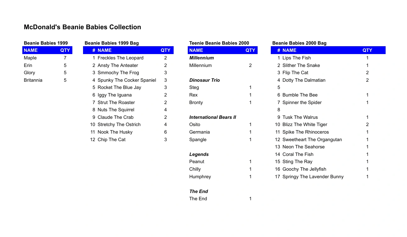 McDonald's Ty Beanie Babies Collection 1999-2000