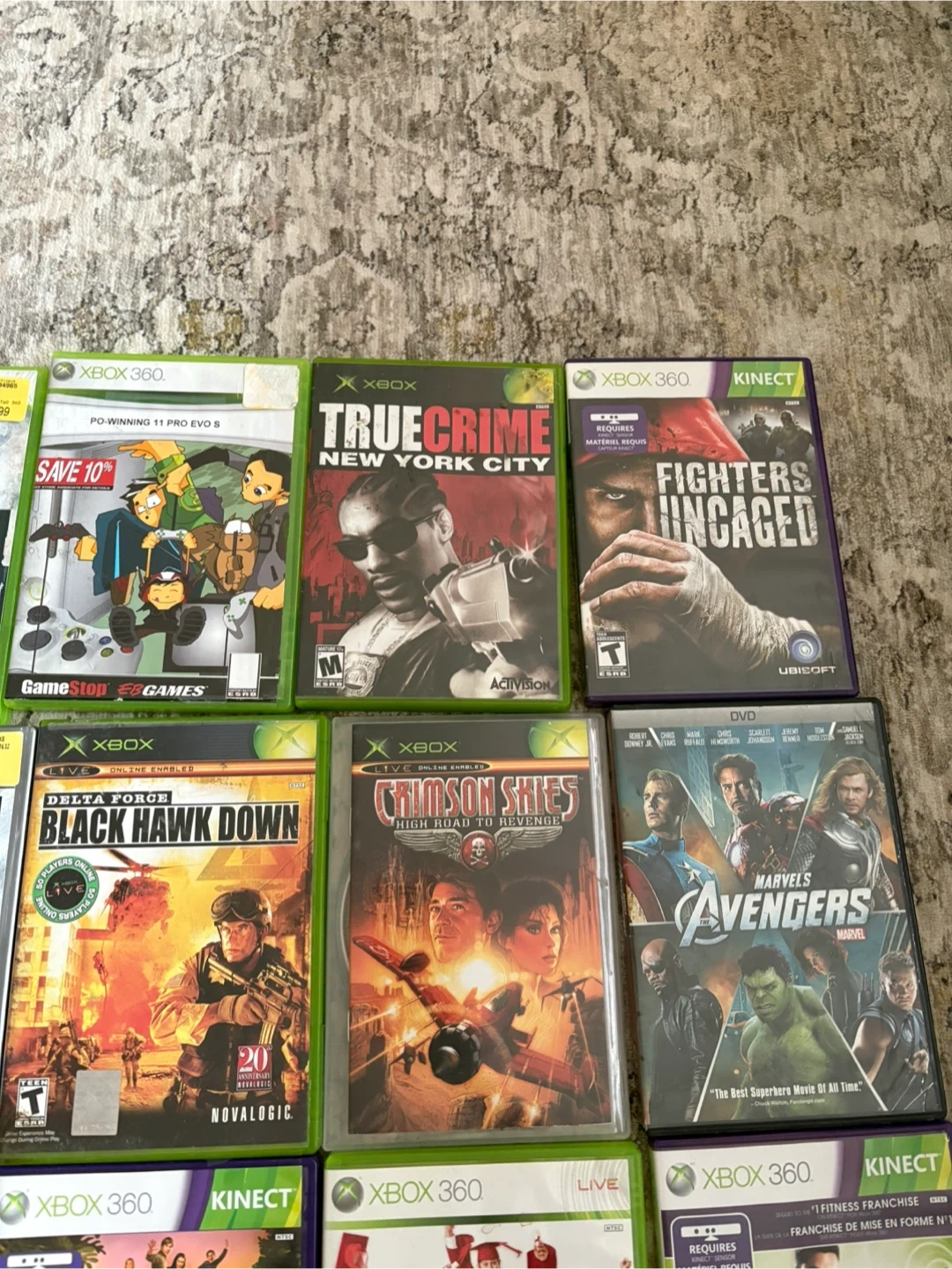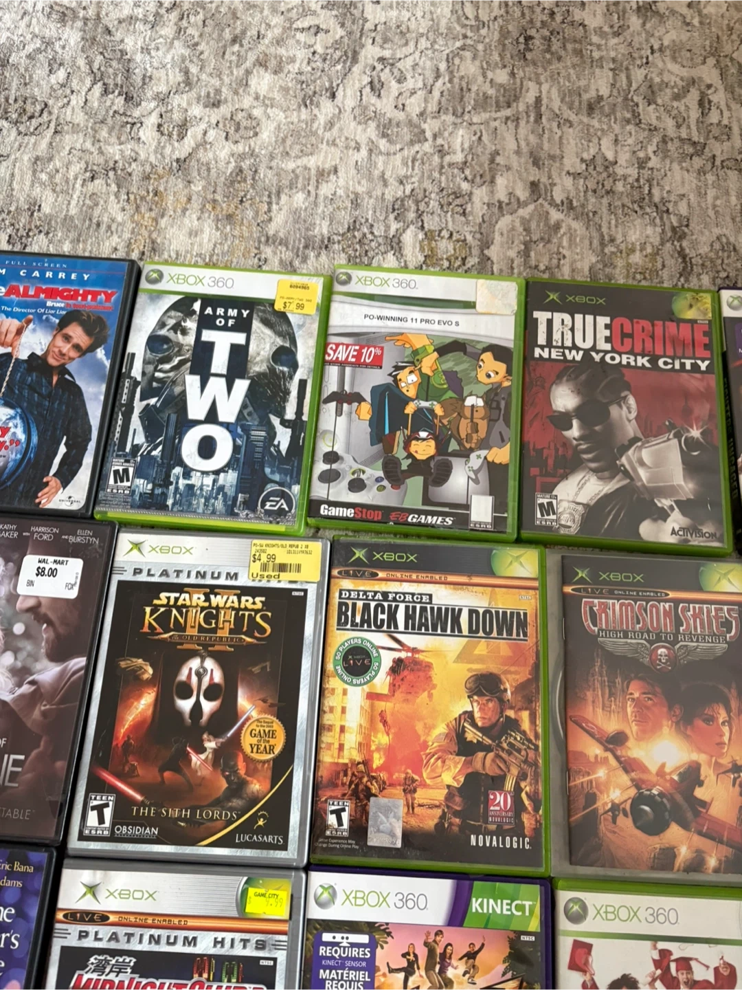 I’ve had these in storage I don’t use Xbox. I don’t need anymore they’re all working and in great condition. These games and other dvds like movies. All of them would be more than $300. Selling all together.
