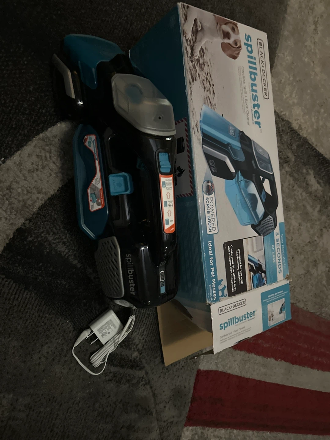 This is a BLACK+DECKER Spillbuster Cordless Spot + Spot Cleaner. It's designed for spills and pet messes, featuring a powered scrub brush. Ideal for quick cleanups!
