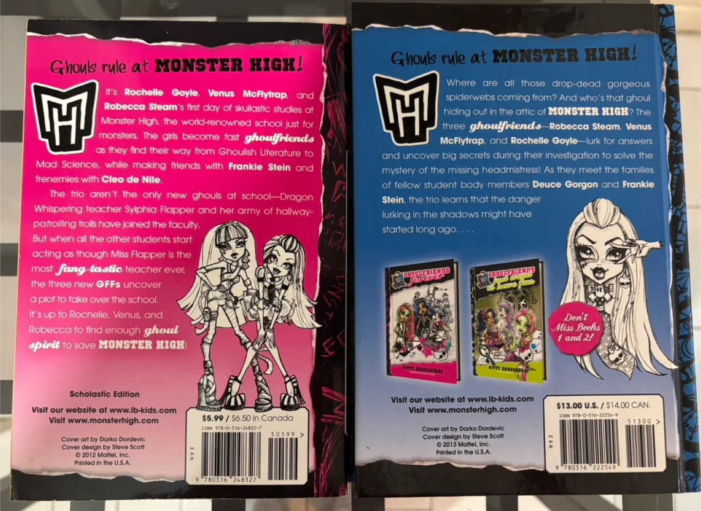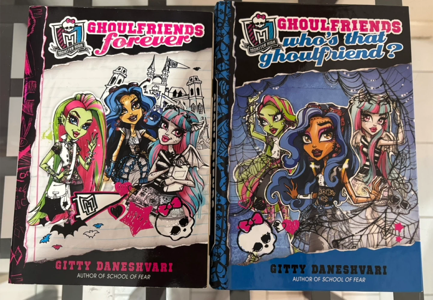 This is a set of two Monster High "Ghoulfriends" books by Gitty Daneshvari. One is titled "Ghoulfriends Forever" and the other is "Who's That Ghoulfriend?". They're written by the author of "School of Fear".