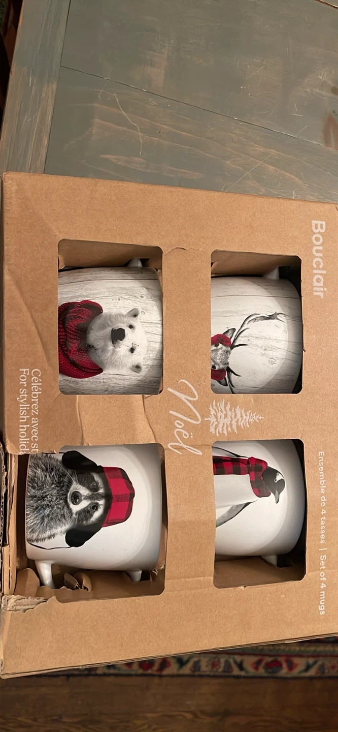 Bouclair Set of 4 Mugs with Animal Designs