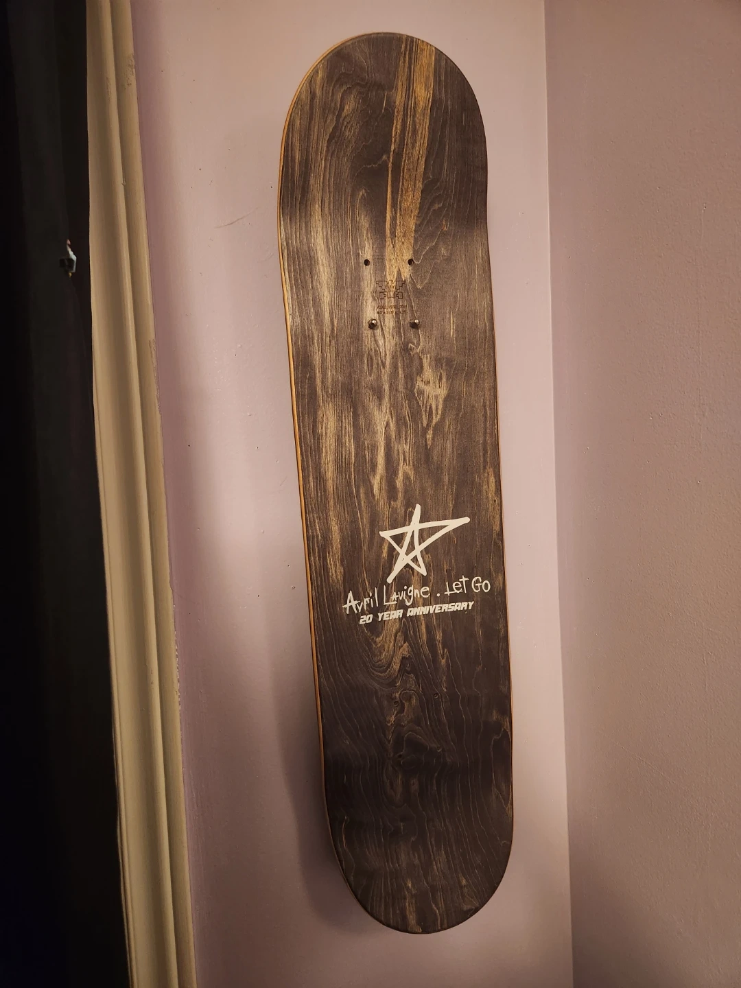 You don't even want to know how much duty I had to pay to receive this in the mail from USA!!! Original price was well over $150 with tax and this specific item is no longer available on Avril's merch site. It was purchased directly from her official site. I am including the wall mount in the price. Mint condition, never been skated on nor have wheels ever been attached. Great price, so Non-negotiable. Great collector's item for any fan of Avril Lavigne. Pick up in Vaughan, Ontario.