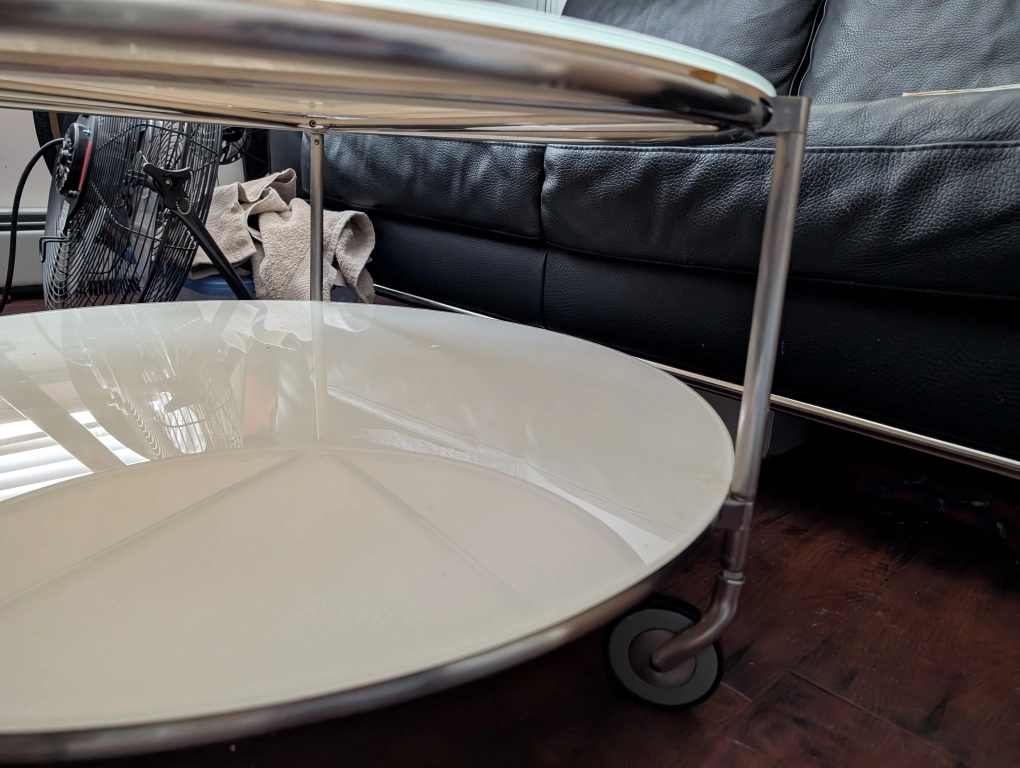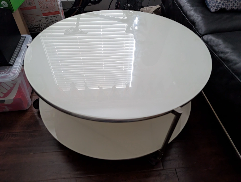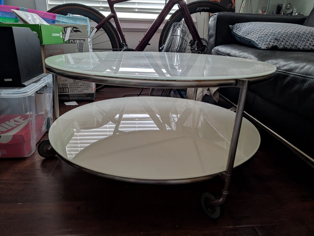 Buy & SellTwo-tiered rolling side tableTwo-tiered rolling side table$85Round side table with two glass shelves. Metal frame. Features four rolling casters. Great for small spaces.ConditionLike newWHERE TO MEETCheck LocationView MapSELLERverifiedIreneEdmonds700 reviews1 chats·1 favorites·68 viewsSEND CHAT TO SELLERHi Irene! I’m interested in your listing.Hi Irene! I’m interested in your listing.Get the Karrot app to chatSign In to chat