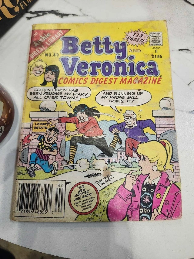 Selling a vintage Betty and Veronica Comics Digest Magazine. This is a used item with some visible wear, but it's still a fun piece for any collector or fan of Archie comics. A real nostalgic treat! If you're seeing this ad, the comic is still available. Don't miss out on this blast from the past! Cash accepted.