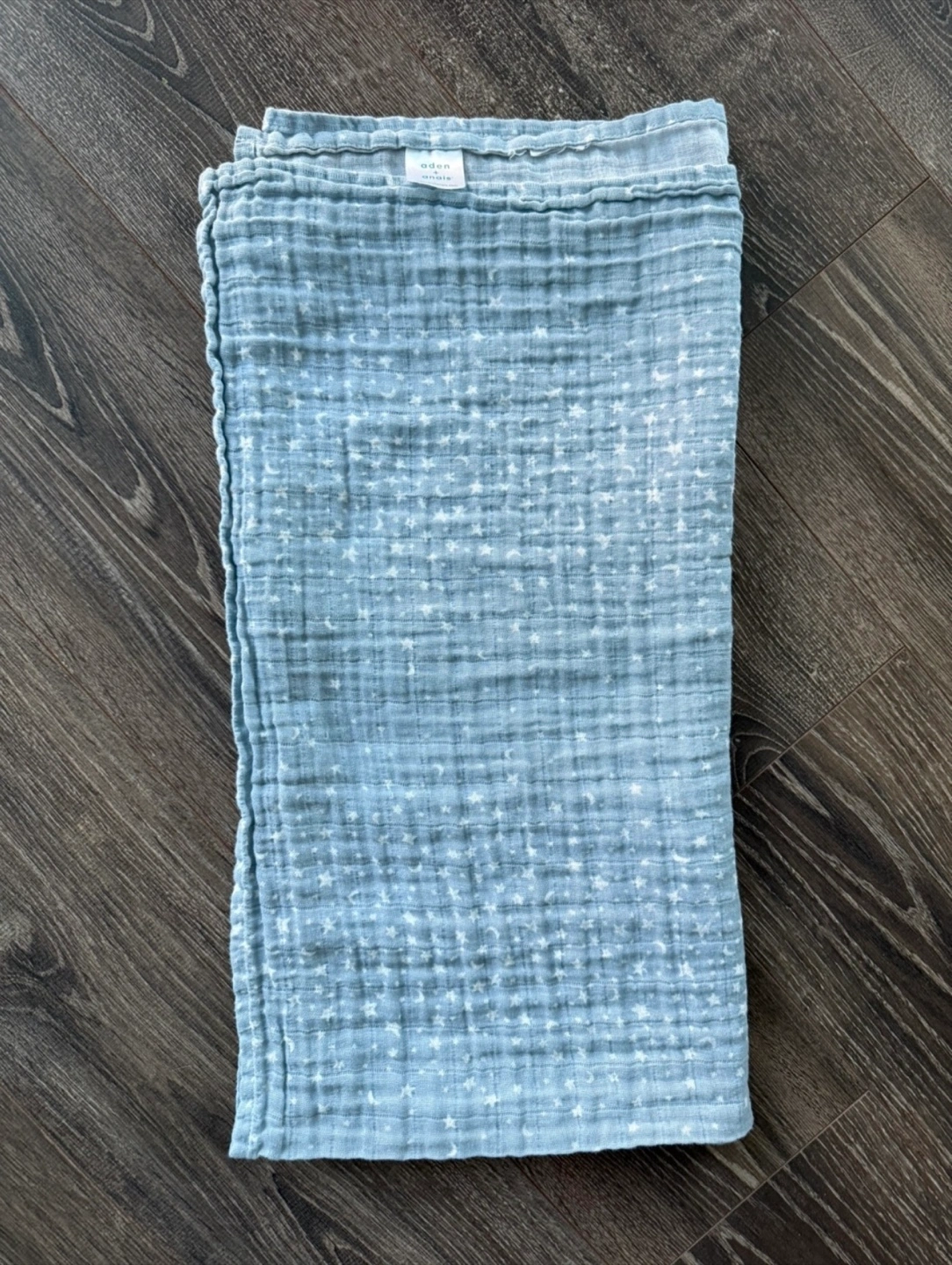 Soft muslin swaddle, lightweight and breathable. Dusty blue with white star print. Perfect for swaddling or as a lightweight blanket.