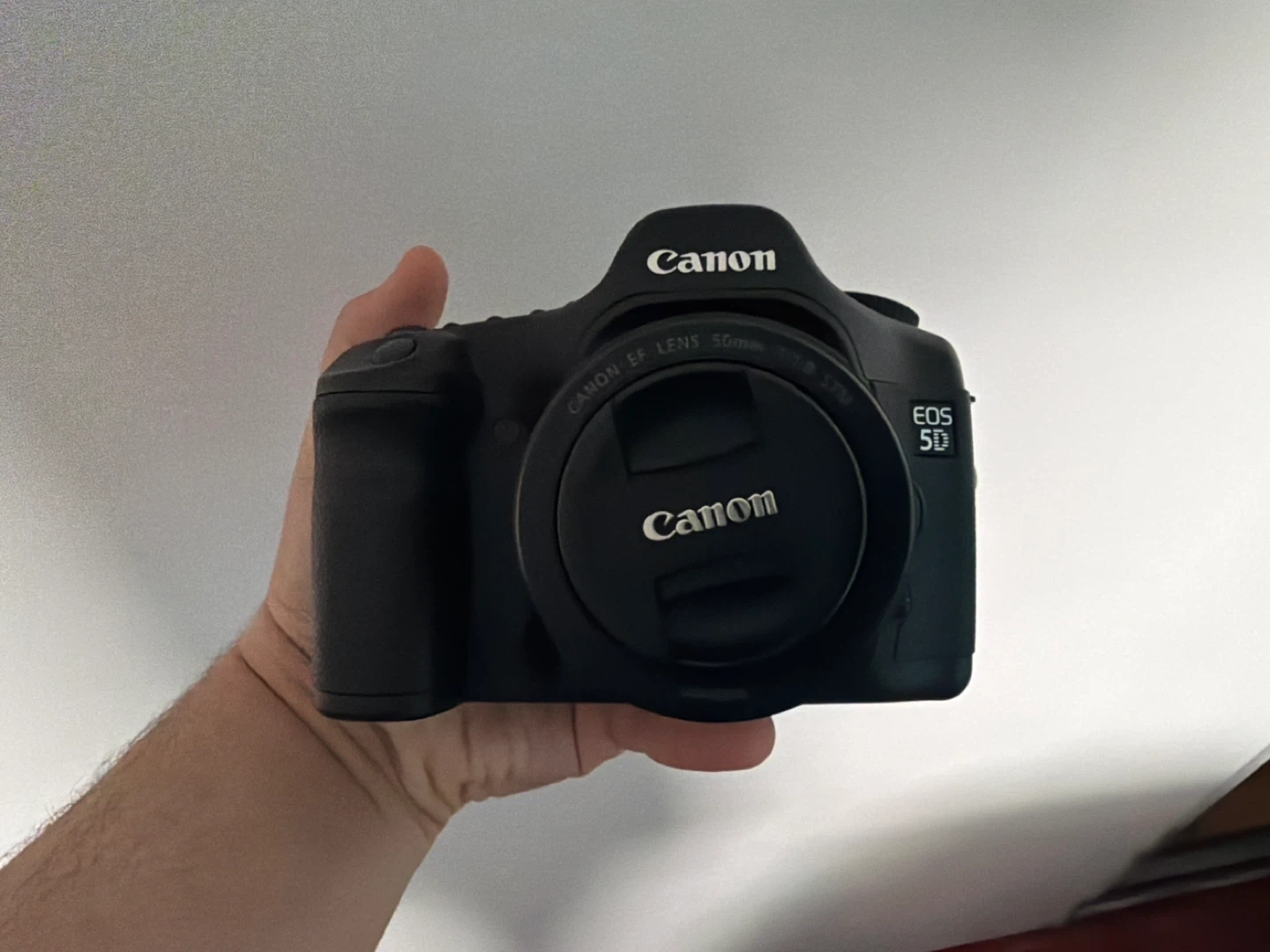 Selling a Canon EOS 5D digital SLR camera. It comes with a Canon EF Lens 50mm f/1.8 STM. This camera is a solid choice for photography enthusiasts.