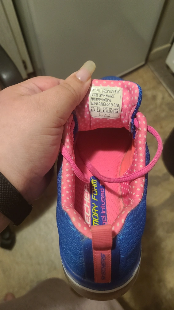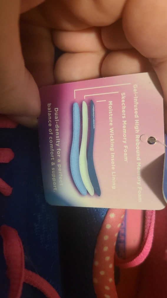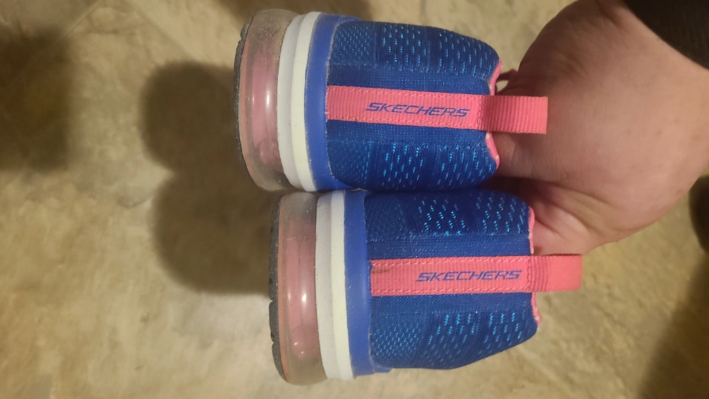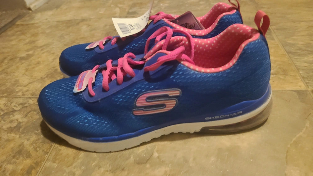 Womens Skechers running shoes. Blue with pink accents. Size 8.5. New with tags. Skech-Air technology. Memory foam insole. Breathable textile upper.