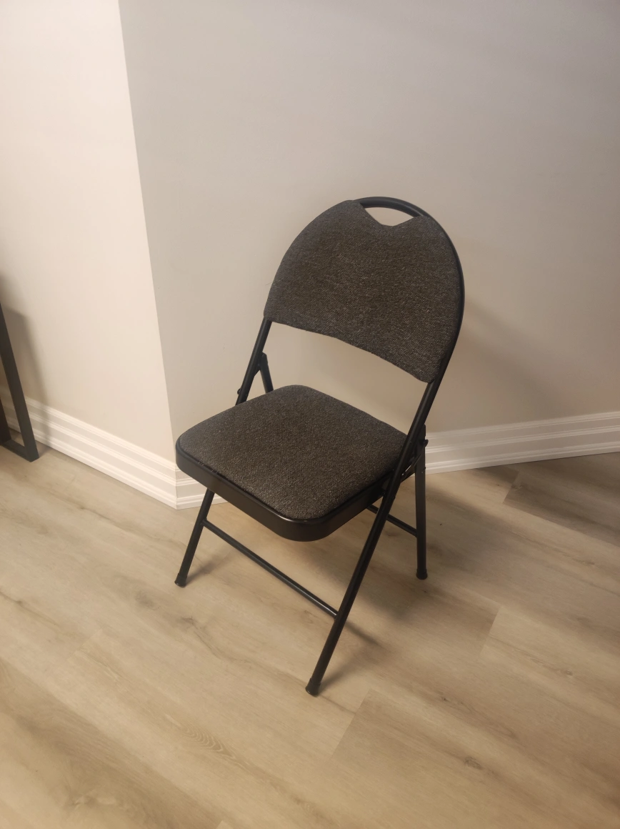 Selling a folding chair in great condition! It's perfect for extra seating when you have guests over or for any event where you need a portable and comfortable chair
