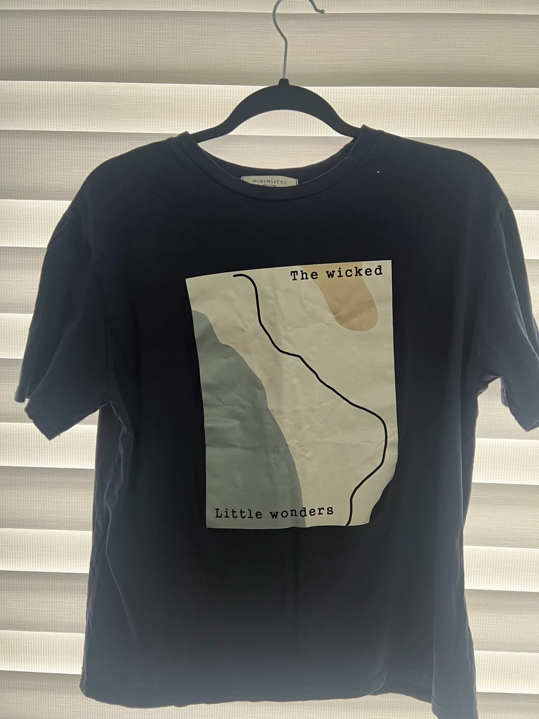 Here's a MOBUMSAENG graphic T-shirt! It features a unique design with the words "The wicked" and "Little wonders". Made from korea