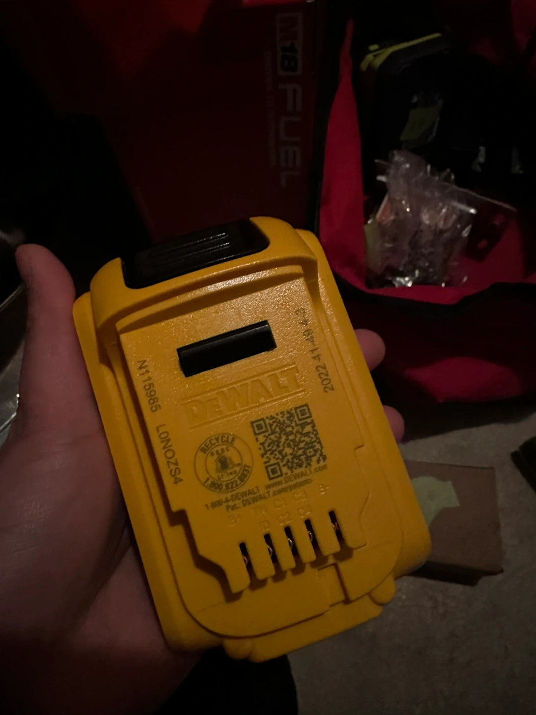 Selling a DeWalt DCB203 20V battery pack. It's a 2.0Ah 40Wh battery. The manufacturing date is 2022 April 14.