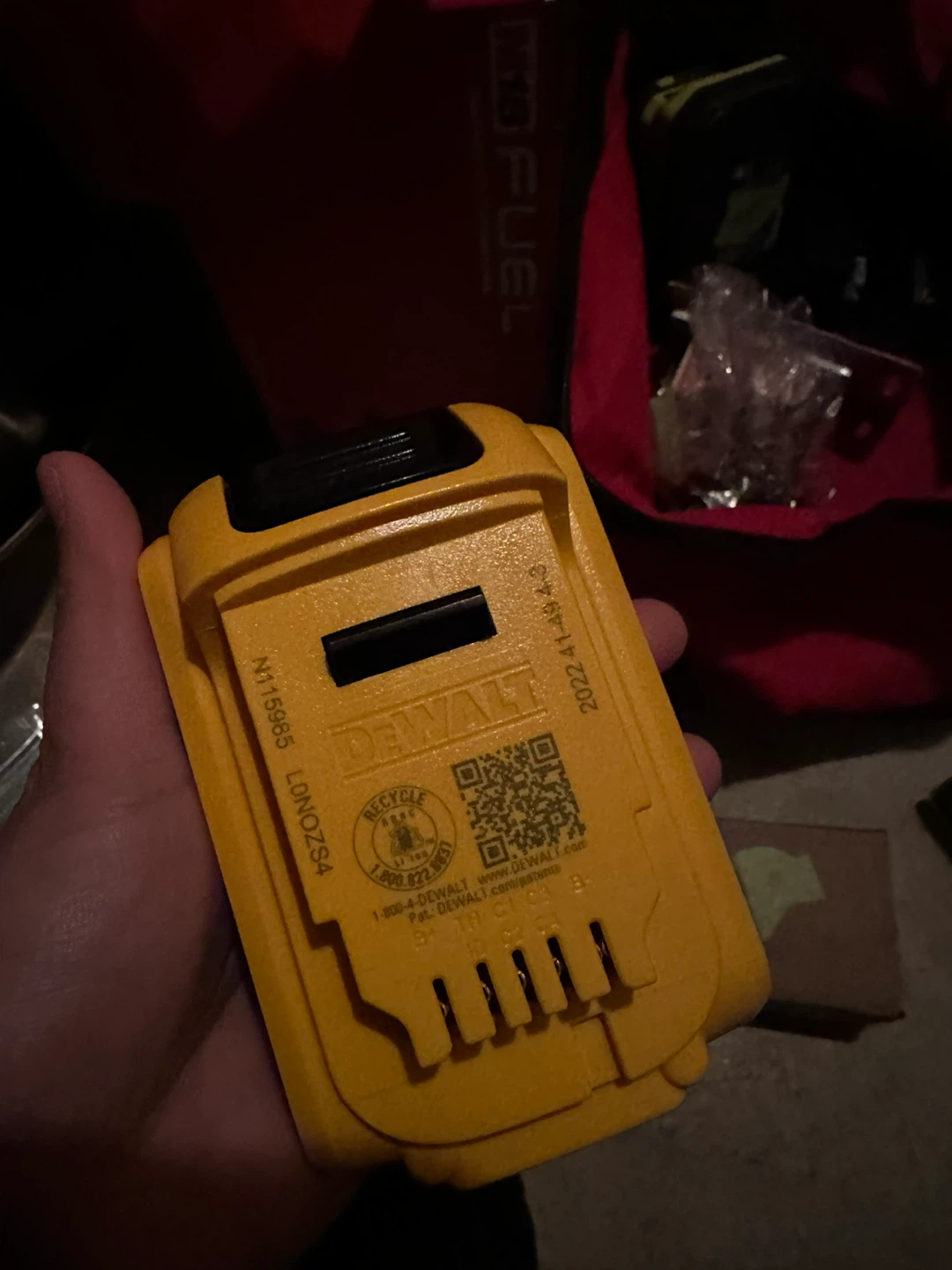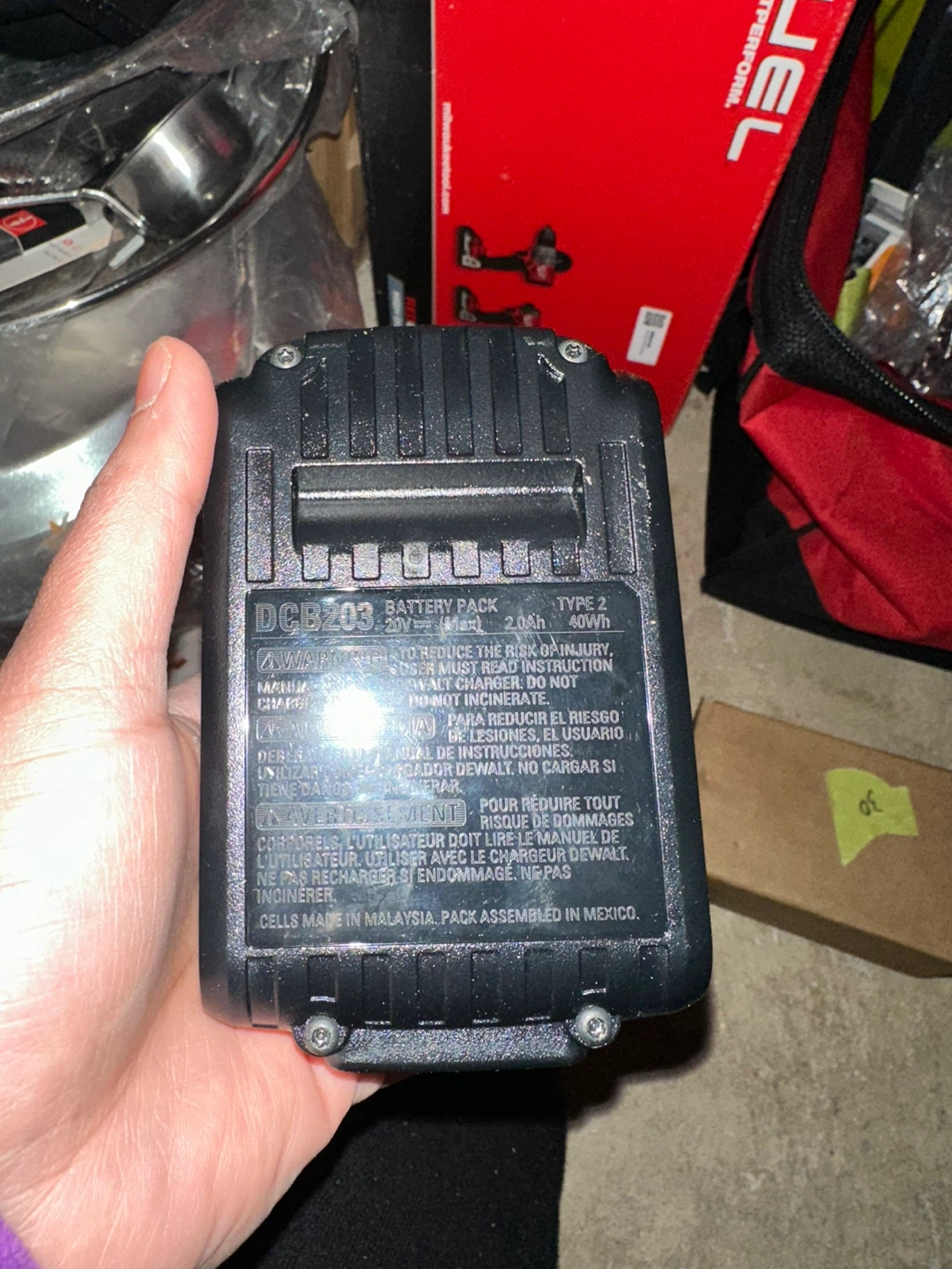 Selling a DeWalt DCB203 20V battery pack. It's a 2.0Ah 40Wh battery. The manufacturing date is 2022 April 14.