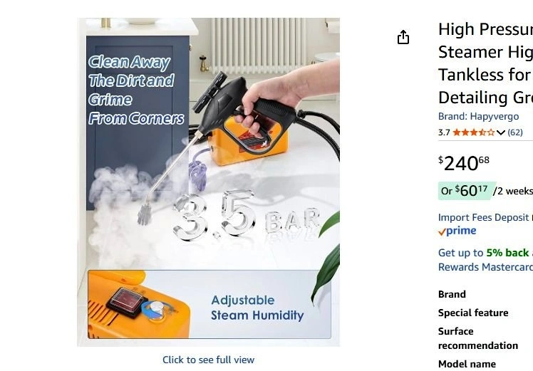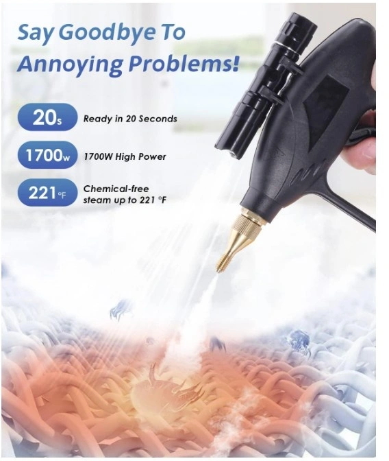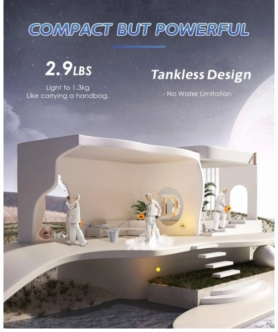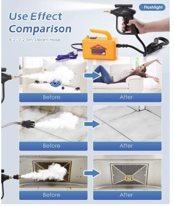 This compact steam cleaner for home use has a built-in 3.3-foot water inlet hose, which can insert into the external bucket as a water source. Enjoy continuous and steady natural steam without holding a heavy tank! 1700W high power, ready in 20 seconds, up to 221℉, cleans with 3.5Bar pressurized steam.