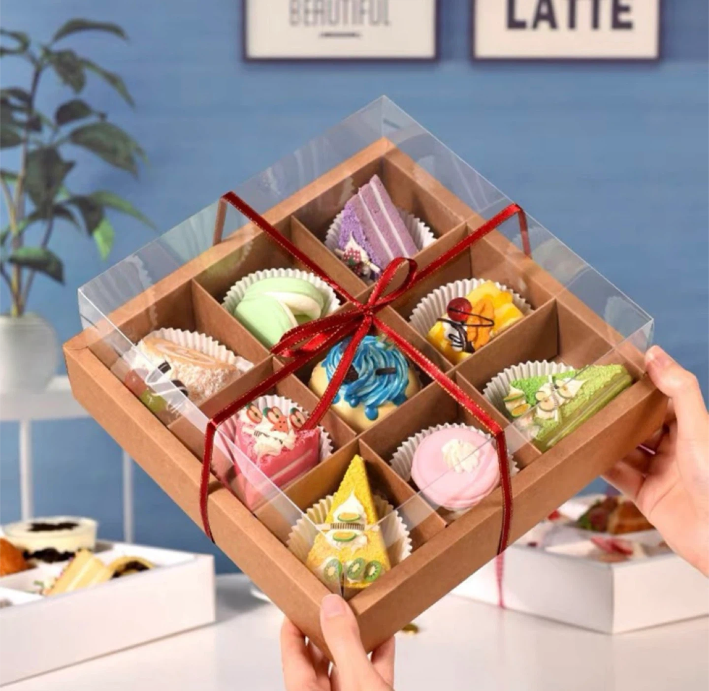 Selling a cute 9-grid box. It comes with a clear lid to keep everything looking fresh and beautiful. The box is made of sturdy cardboard and each grid measures 7.5cm x 7.5cm. The overall dimensions of the box are 25cm x 25cm x 10cm.