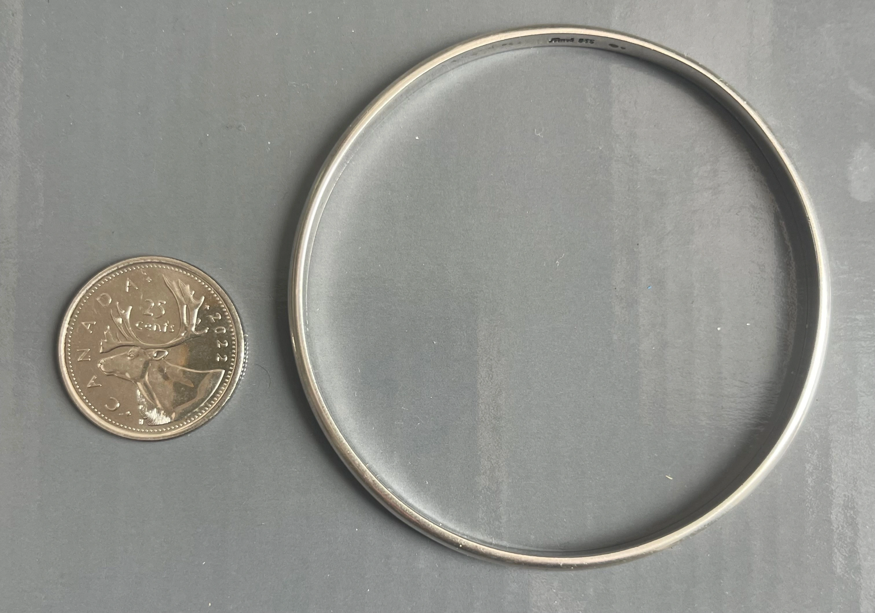 This is a beautiful, sleek solid silver bangle crafted to the classic German 835 standard (a high-quality European silver). It’s a "slip-on" style with no clasp, giving it that clean, timeless minimalist look that goes with everything.
