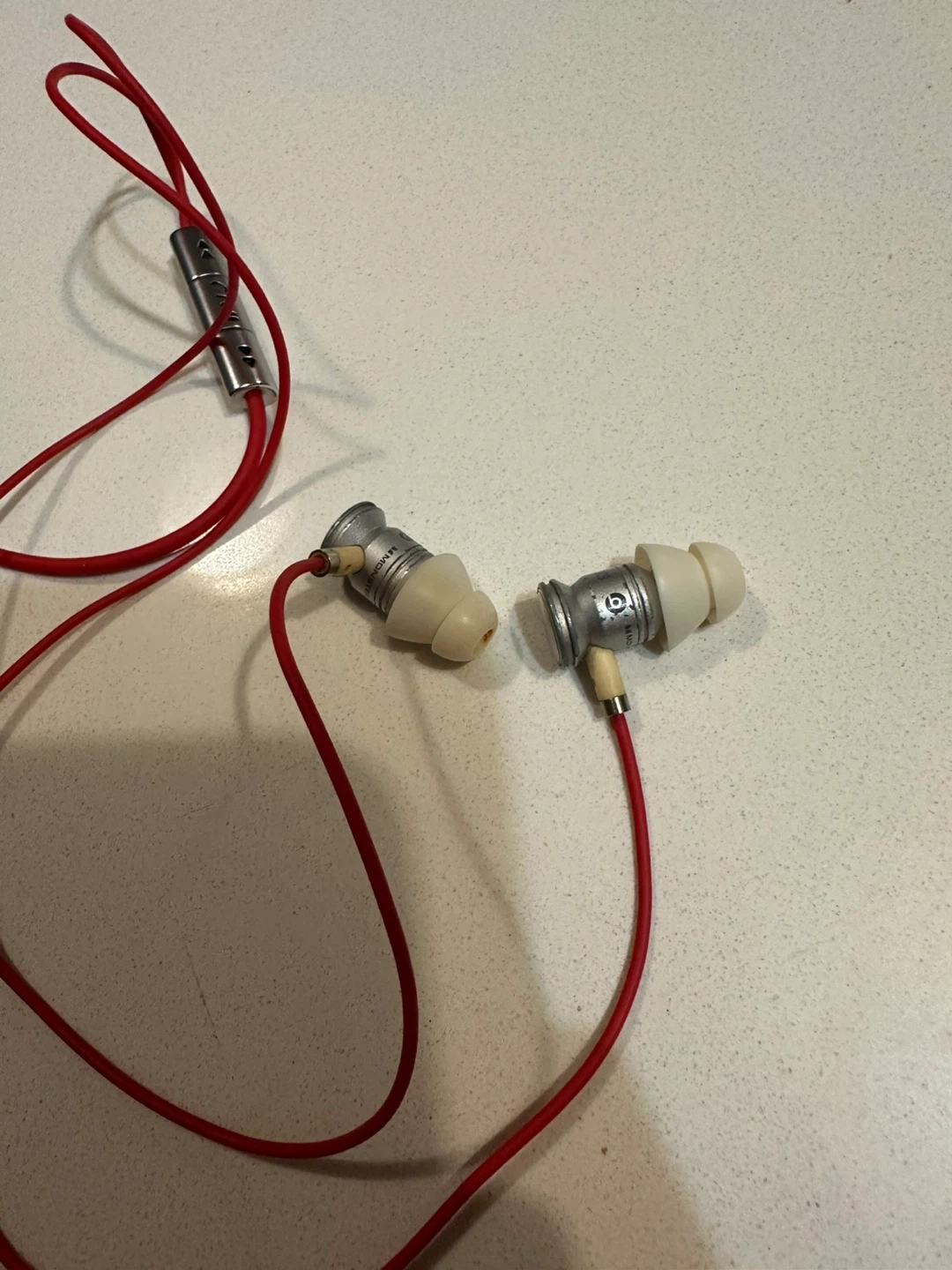 Iconic red Beats wired earphones — now a classic cuz discontinued and no longer sold first-hand. With their signature metal design and classic Beats bass, they’ve become a retro audio piece from the early Beats era. 🎧