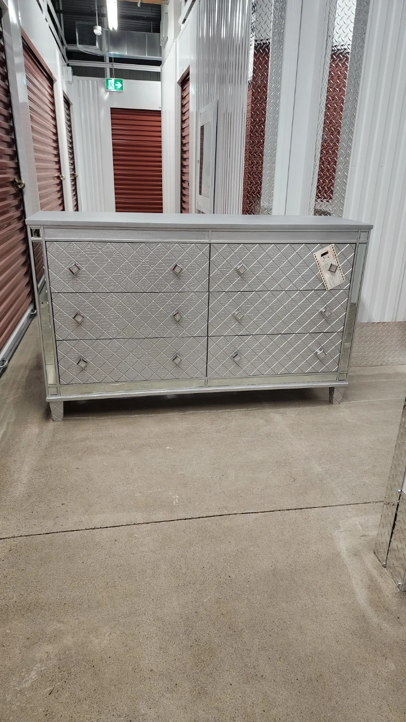 Silver Mirrored Dresser with 6 Drawers