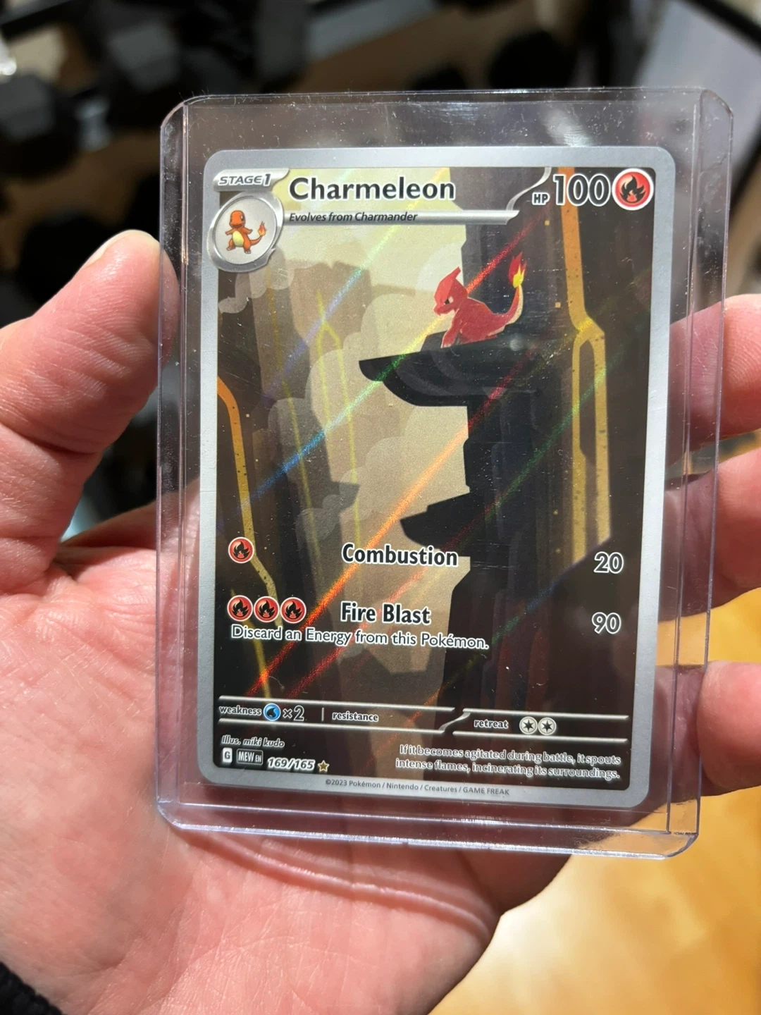 Charmeleon 151 Pokemon TCG card, number 169/165. Card was sleeved and top load protected as soon as pulled from pack.