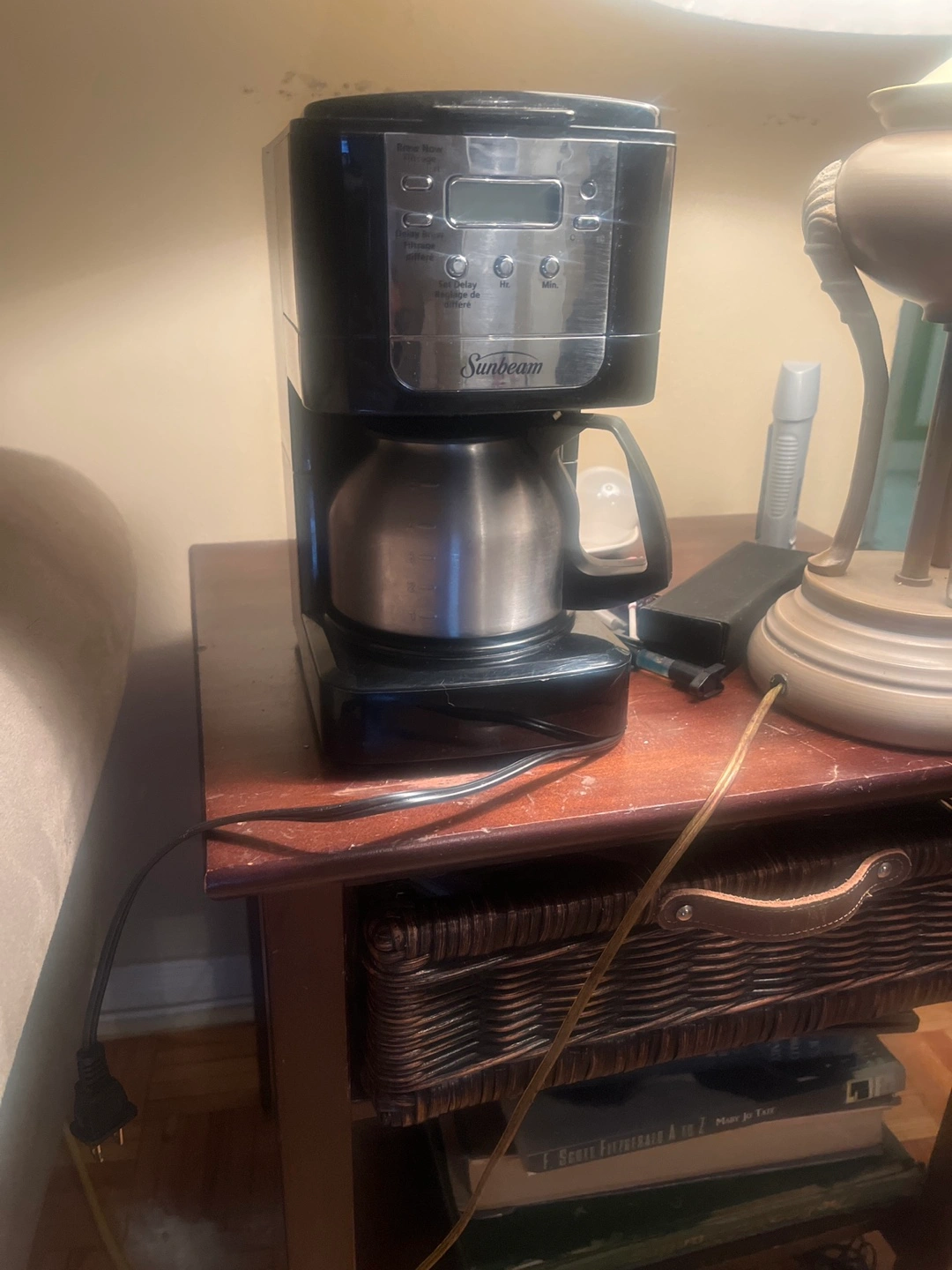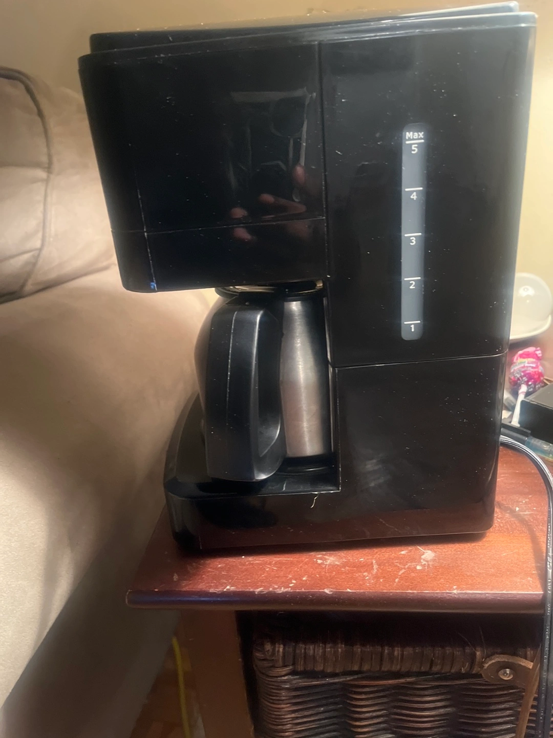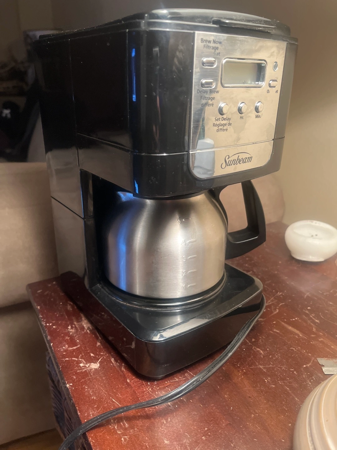 Programmable coffee maker with a stainless steel carafe. Includes a digital display.