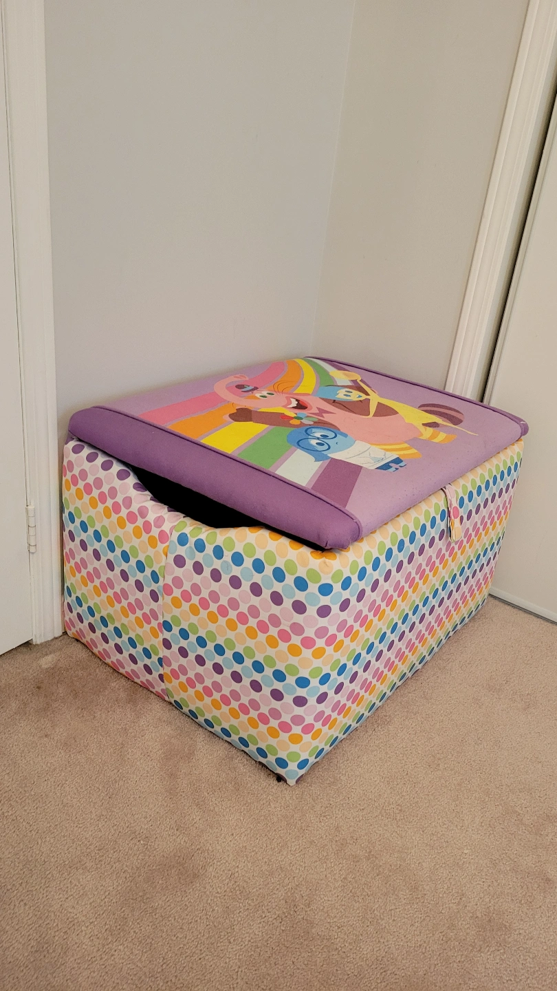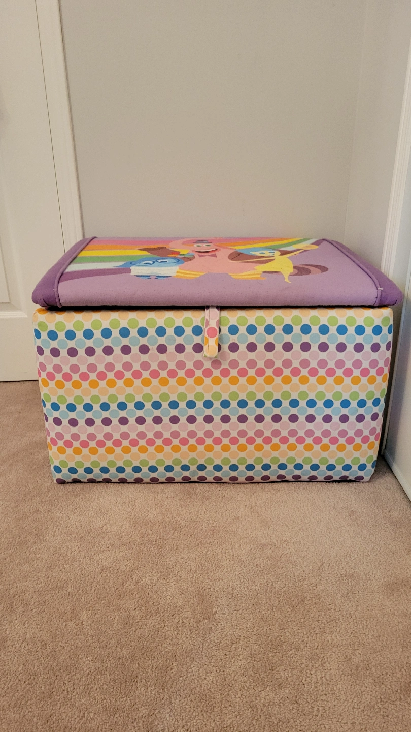 Adorable Inside Out themed toy chest. Great for storing toys or blankets. Offers ample storage space. Ready for pickup. Minor marker marks.