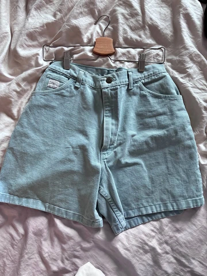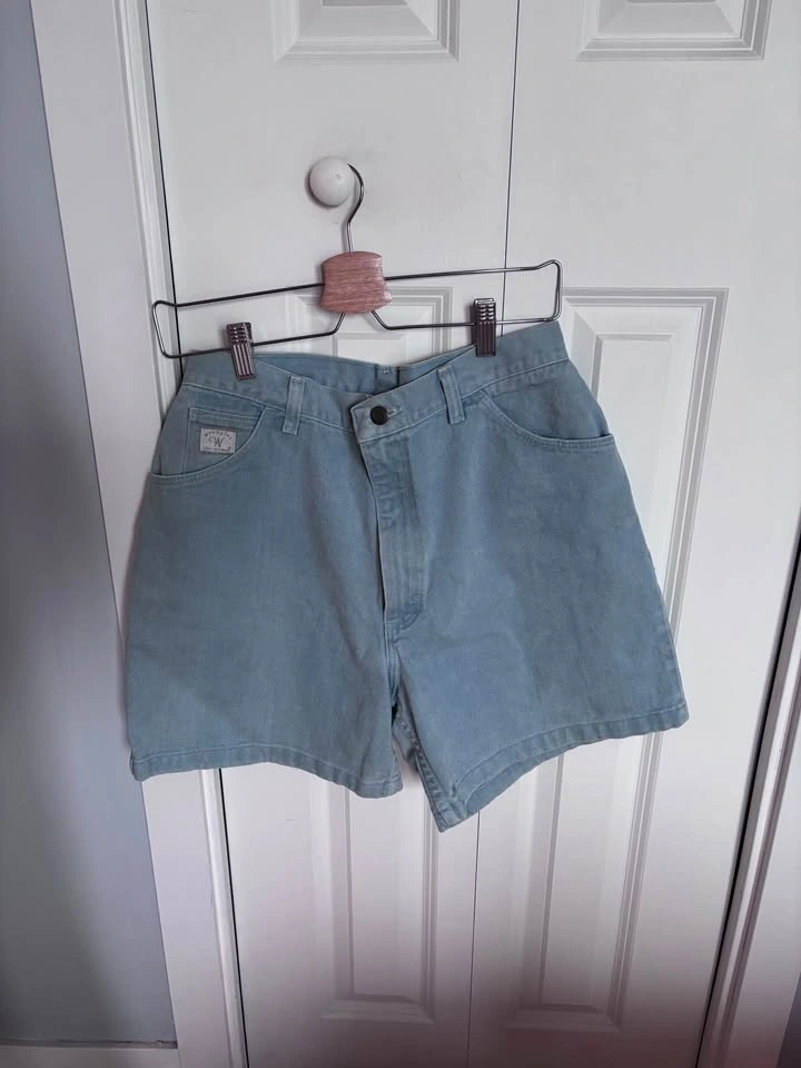 High waisted light denim shorts. Tag says "Size 14 Regular" but they fit closer to a 28-29" waist. Great condition.