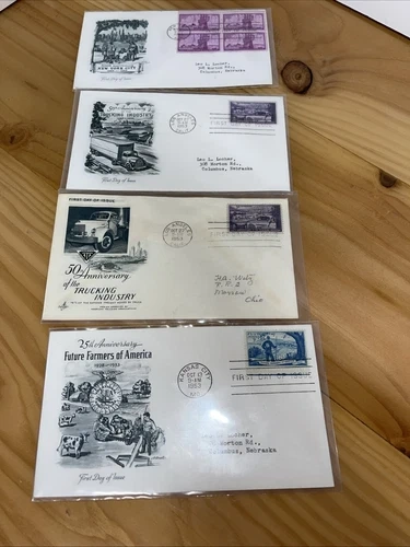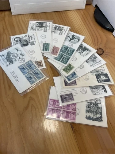Lot of 10 US stamps First Day Covers (#1017, 18, 19, 20, 21, 23, 24, 25, 25, 1027) featuring 3c stamps from 1953. See all pictures of item. Sold as is.