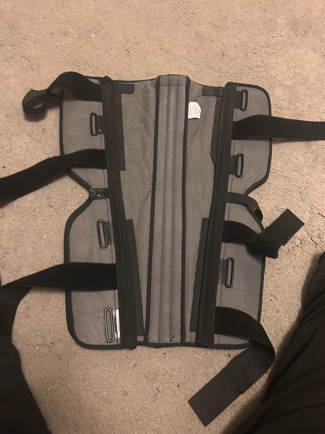Selling a DJO LLC knee brace. It's served its purpose and is in great condition. Please see photos for all the details. It’s fine but there’s a little lint in the Velcro I’m working on getting out: