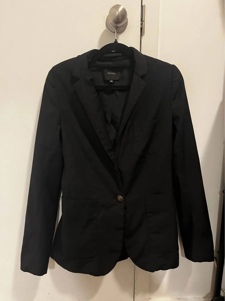 1 / 41 / 4Buy & SellBlack Talua BlazerBlack Talua Blazer$50Great condition, it is too big for me now. It does need to be ironed or steamed to get some wrinkles out though.WHERE TO MEETCheck LocationView MapSELLERverifiedSonyaCorso Italia600 reviews1 chats·0 favorites·5 viewsSEND CHAT TO SELLERHi Sonya! I’m interested in your listing.Hi Sonya! I’m interested in your listing.Get the Karrot app to chatSign In to chat
