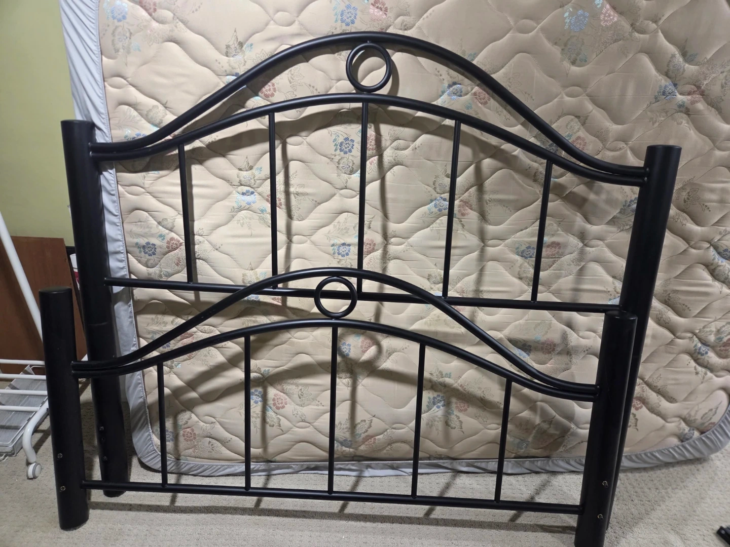Selling a black metal double-bed frame in excellent condition. All pieces are included as shown in the pictures. Sturdy and ready for a new mattress!