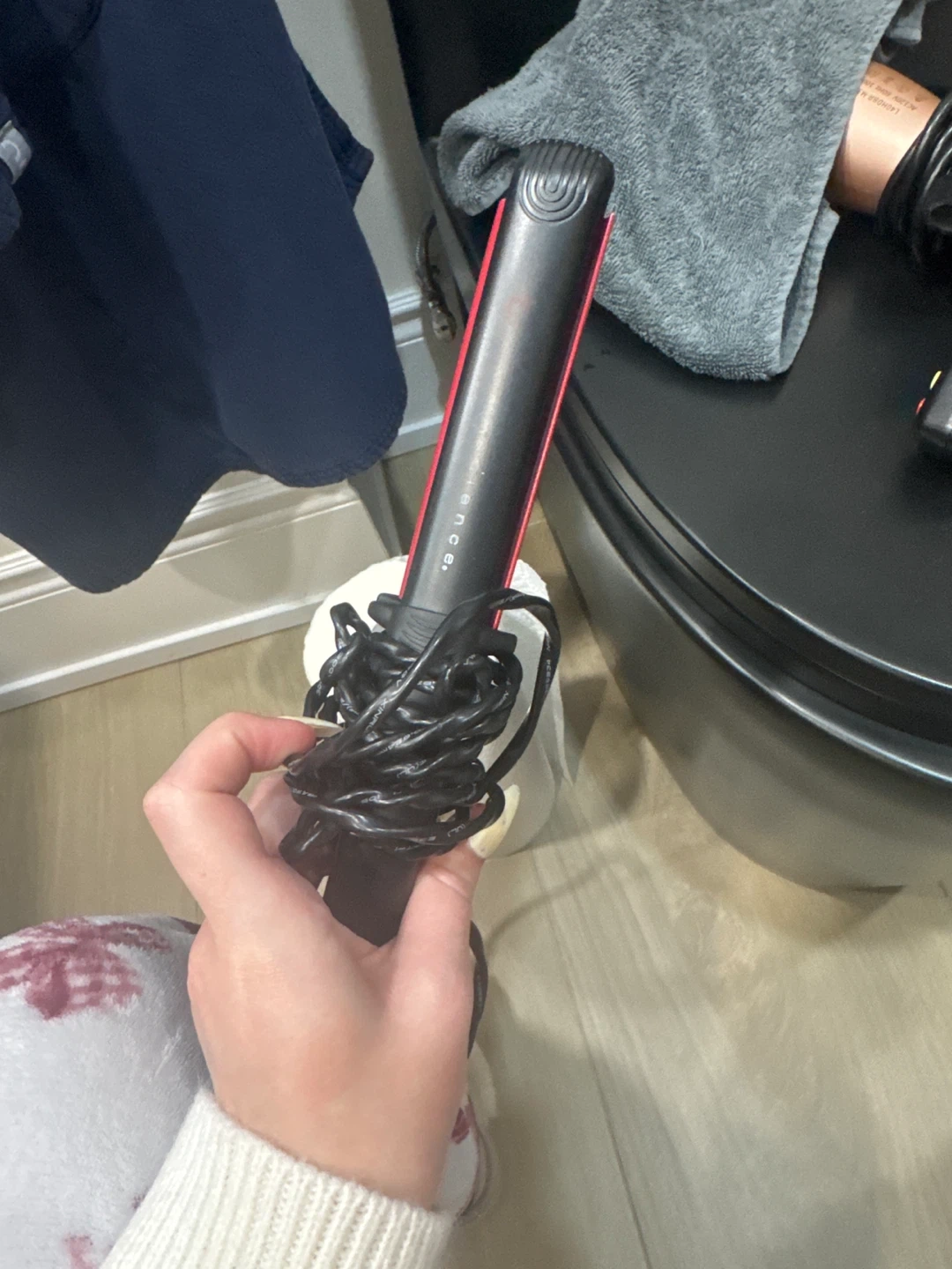 This flat iron features ceramic plates for smooth straightening. It has adjustable temperature settings up to 450 degrees Fahrenheit. It's a handy tool for achieving a sleek look.