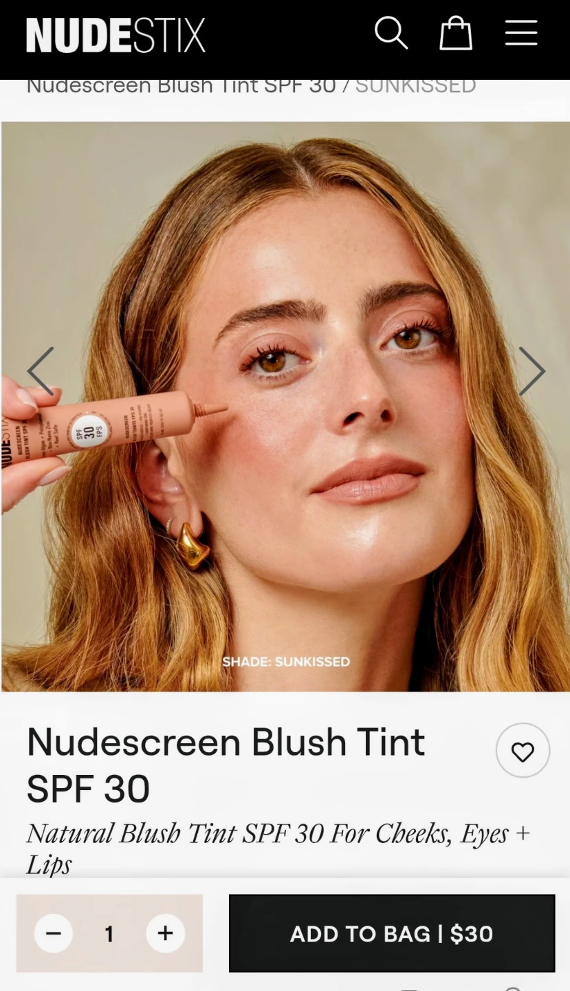 Selling a Nudestix Nudescreen Blush Tint SPF 30! It's a natural blush tint with SPF 30 that can be used on cheeks, eyes, and lips. It contains green algae and polyphenol, and non-nano zinc. It is reef safe and provides UVA and UVB broad spectrum protection. The size is 15 ml / 0.51 fl oz*** Sunkissed***