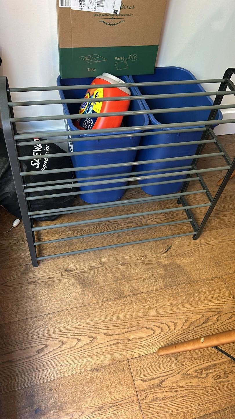 Selling a grey plastic shoe rack in great condition! It's perfect for organizing your shoes and keeping your entryway tidy. This sturdy rack can hold multiple pairs of shoes, making it a practical addition to any home