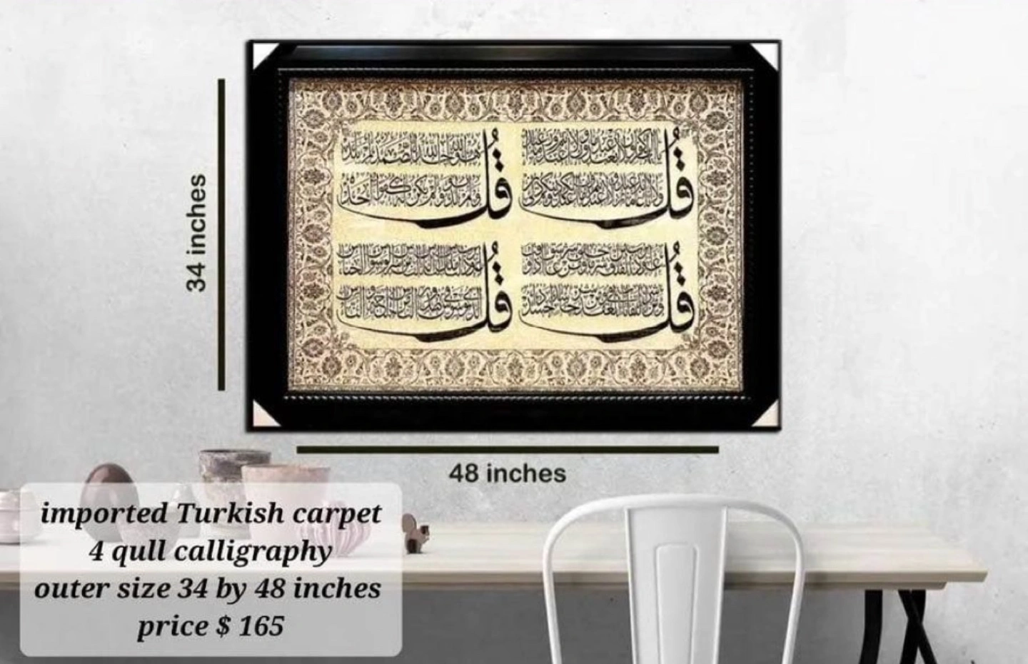 Buy & SellIslamic Calligraphy ArtworkIslamic Calligraphy Artwork$165- Great Turkish artwork - No glass cover - $165WHERE TO MEETCheck LocationView MapSELLERverifiedShaizalMarkham E650 reviews1 chats·1 favorites·11 viewsSEND CHAT TO SELLERHi Shaizal! I’m interested in your listing.Hi Shaizal! I’m interested in your listing.Get the Karrot app to chatSign In to chat