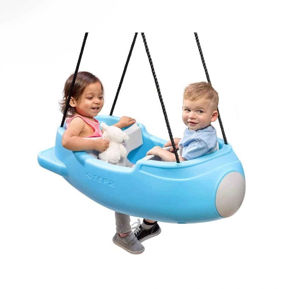 Step2 Rocket Swing features a rocket ship themed toddler swing with ample room for two children. Uniquely designed for face-to-face interaction. Includes Safe-T-Bars™ for safety. Weather-resistant ropes and easy-to-clean seats. Minimal adult assembly required. Can be used on most swing sets with Easy Mount hardware. For ages 9-36 months.