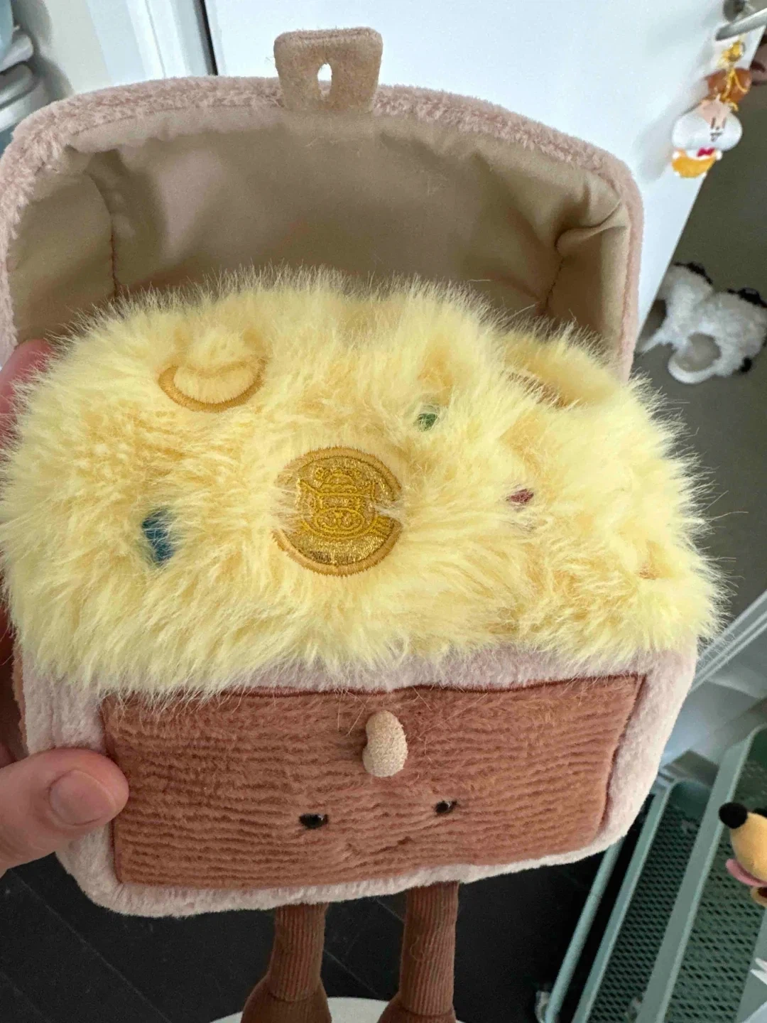 This is a Jellycat Amuseables Cheese Toastie plush. It's super soft and cuddly. Perfect for display or as a fun friend!