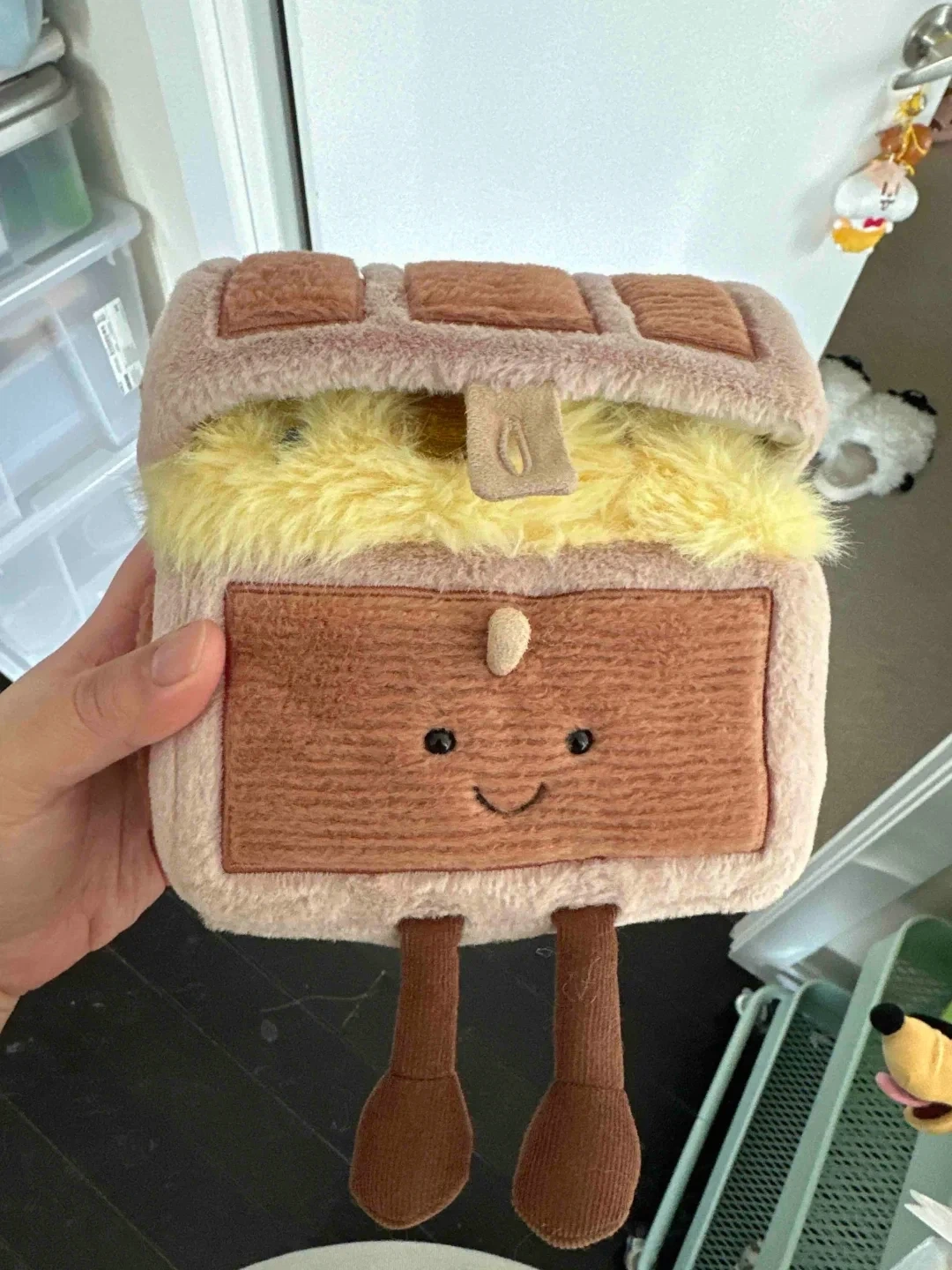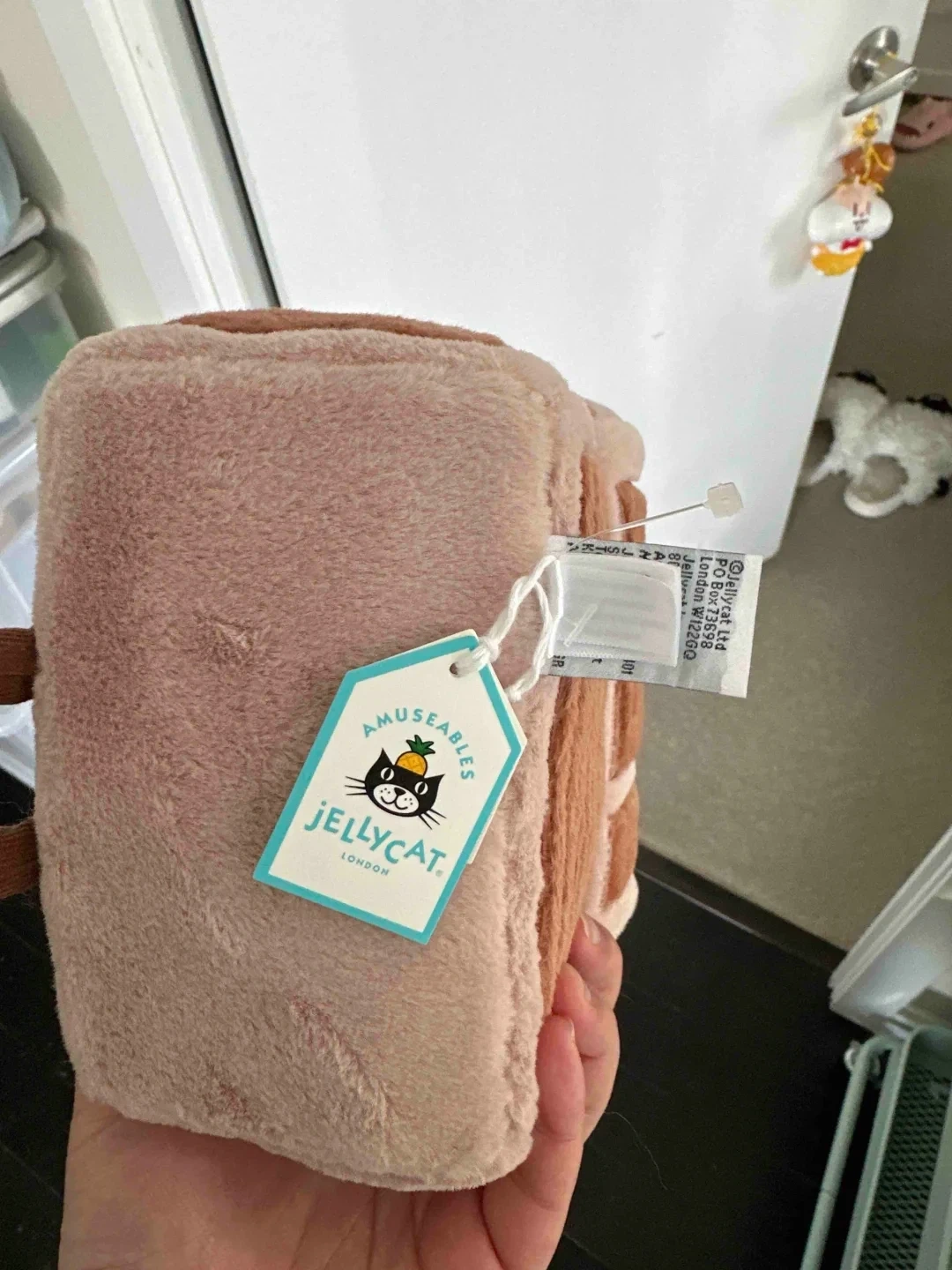 This is a Jellycat Amuseables Cheese Toastie plush. It's super soft and cuddly. Perfect for display or as a fun friend!