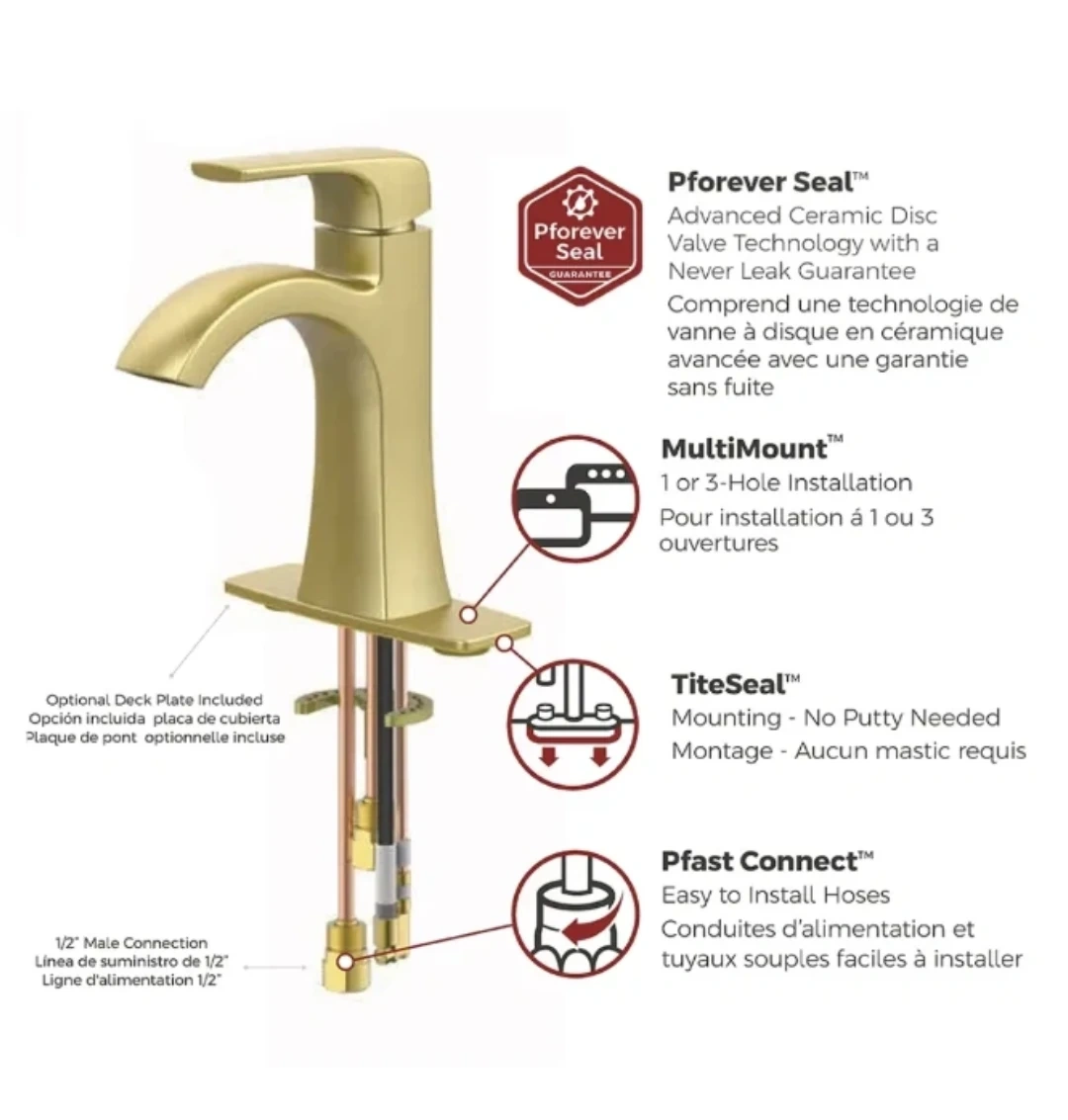 Features Pforever Seal™ advanced ceramic disc valve technology. Includes 1/2" male connection.