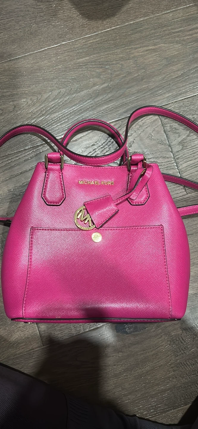 Selling a lovely Michael Kors satchel in a vibrant pink colour! It's made of leather and features the classic MK logo. Perfect for adding a pop of colour to any outfit!