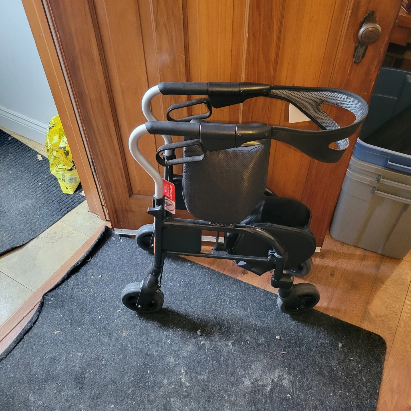 This rollator walker is designed for mobility assistance. It features a built-in seat for resting and a convenient basket for carrying items. The adjustable handles ensure a comfortable fit for different users. It's a practical aid for getting around!