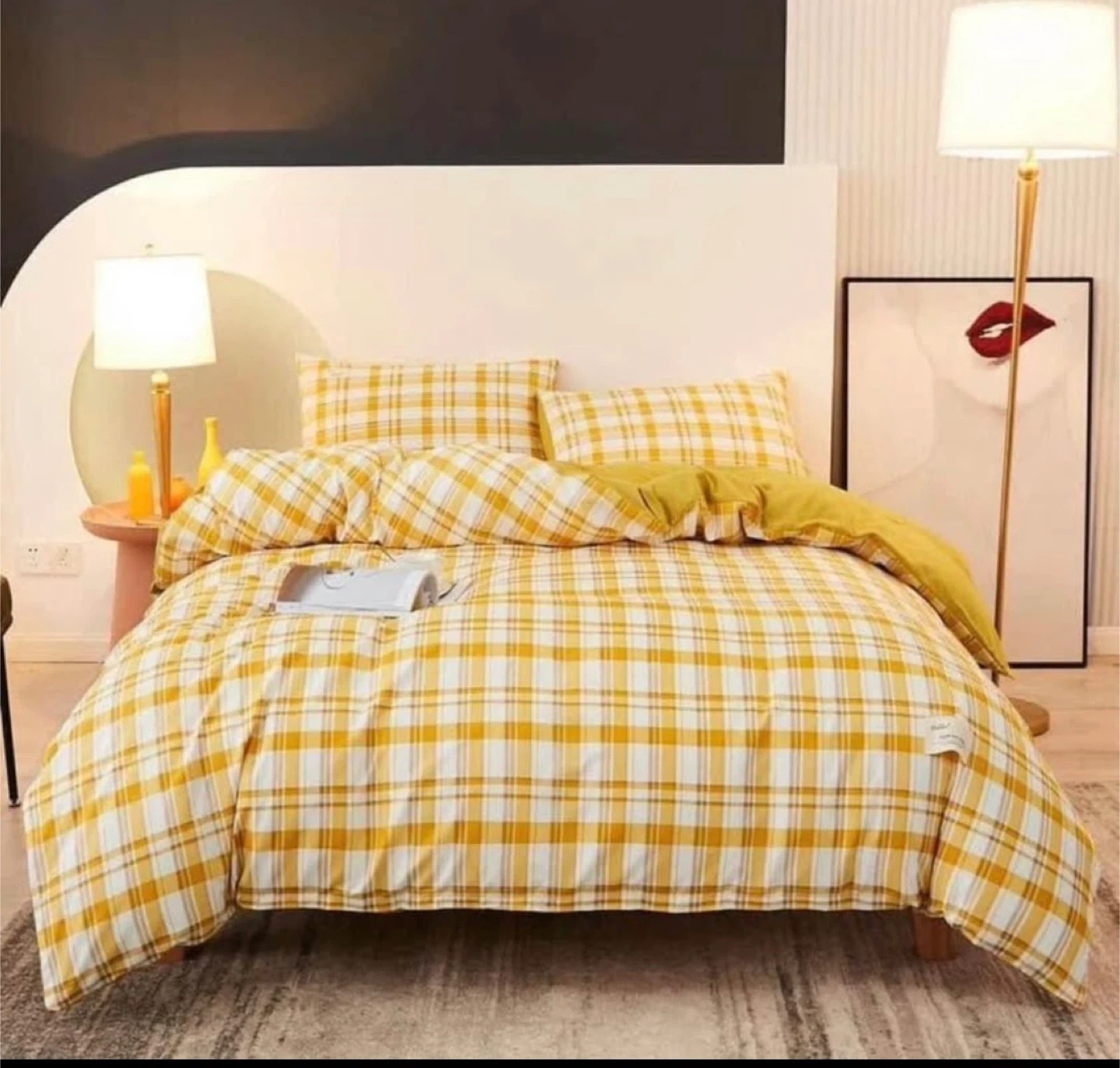 Yellow Plaid Duvet Cover Set