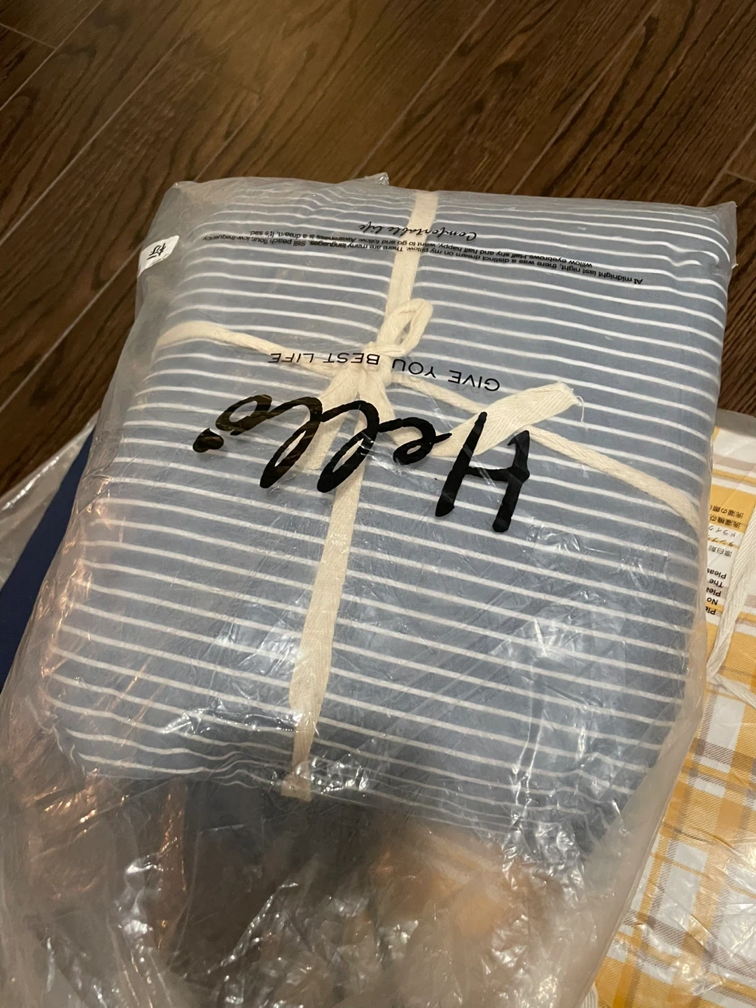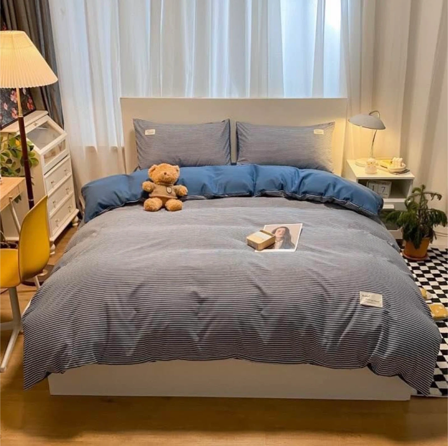 Bedding set Queen size 1.6x2m. It includes a duvet cover , mattress cover and two pillowcases. The fabric is soft and comfortable, perfect for a cozy bedroom.
