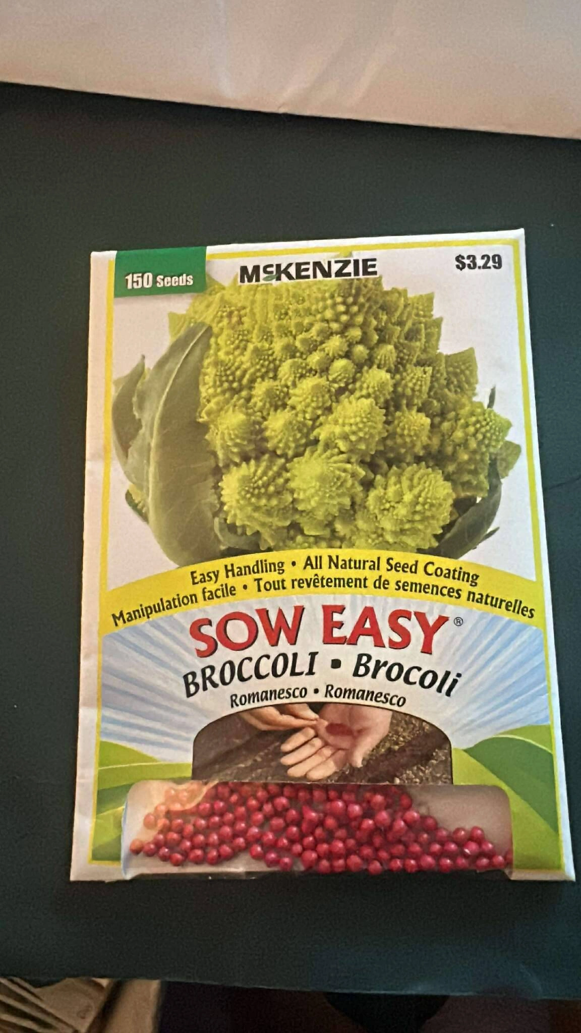 Selling 3 packs of McKenzie Sow Easy Romanesco Broccoli seeds for $1.50 each . The package says it contains 150 seeds and features an easy handling, all-natural seed coating. Great for starting your garden! original Price is $3.29 each