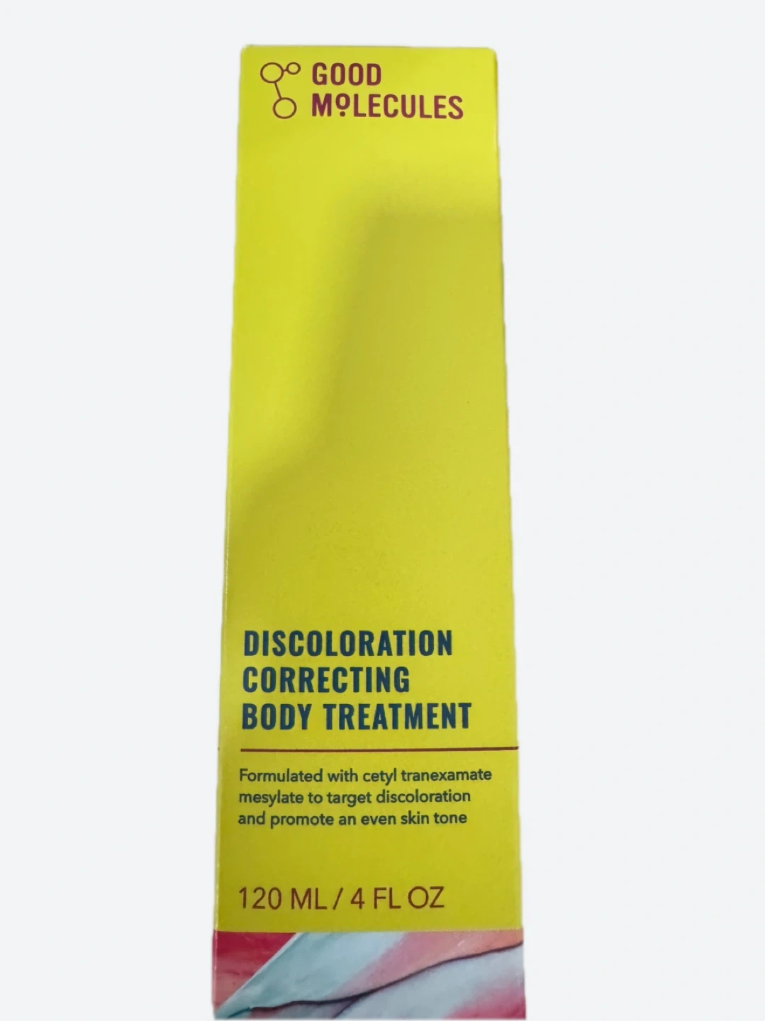 This is the Good Molecules Discoloration Correcting Body Treatment. It's formulated with cetyl tranexamate mesylate. 120 ML / 4 FL OZ.