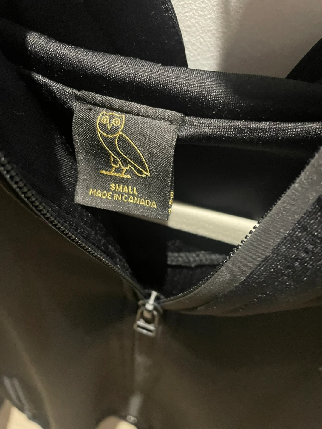 Black OVO hoodie with gold owl logo. Made in Canada. Size small. Purchased at Yorkdale Store. Pick up Bolton