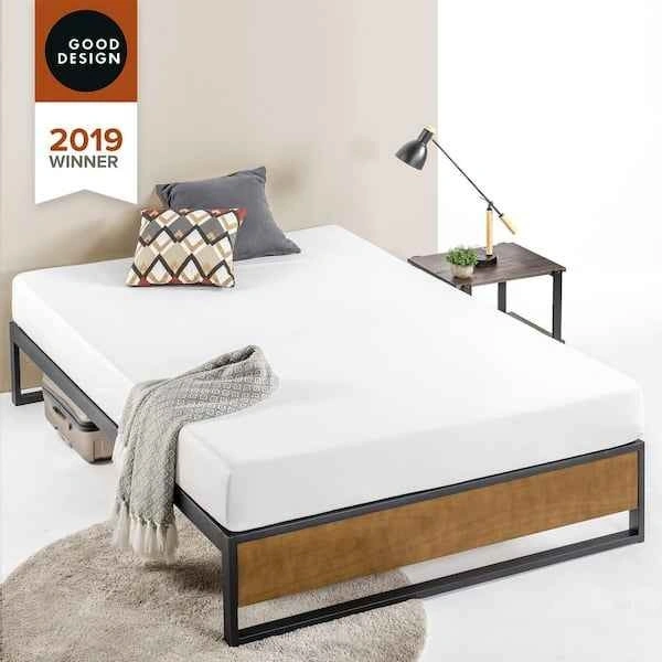 Zinus Ironline 14 Inch Full/Double Size Bamboo and Metal Platforma Bed Frame, No Box Spring Needed, Wood Slat Support, Chestnut Brown