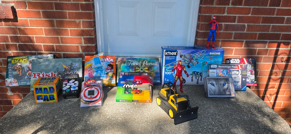All FREE - first come first served. - a variety of board games and toys including Risk, Trivial Pursuit, K'nex Imagine set, and more! Great for family fun and entertainment. Check out the pictures to see everything included!