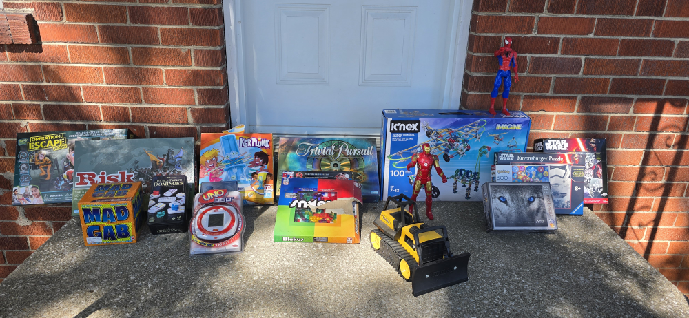 All FREE - first come first served. - a variety of board games and toys including Risk, Trivial Pursuit, K'nex Imagine set, and more! Great for family fun and entertainment. Check out the pictures to see everything included!