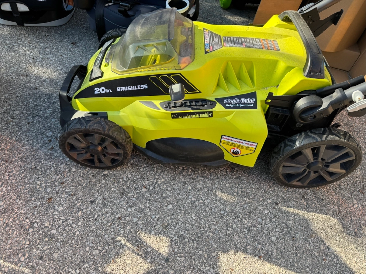 Buy & SellRyobi 40V Lithium 20-inch Brushless Lawn MowerRyobi 40V Lithium 20-inch Brushless Lawn Mower$150Garage sale: 20-inch brushless Ryobi lawnmower. 40V lithium battery. Single-point height adjustment. Good condition.WHERE TO MEETCheck LocationView MapSELLERSREringate999 reviews4 chats·1 favorites·47 viewsSEND CHAT TO SELLERHi SR! I’m interested in your listing.Hi SR! I’m interested in your listing.Get the Karrot app to chatSign In to chat