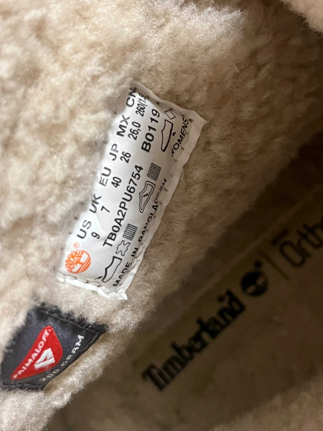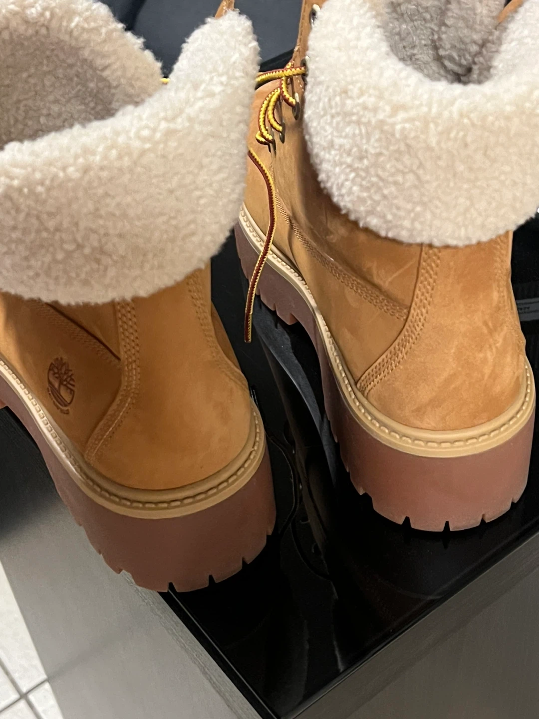 Selling a pair of winter Timberland boots for women in size 9. They are in great condition and ready for a new owner! The boots are a stylish tan colour with a cozy, soft lining.