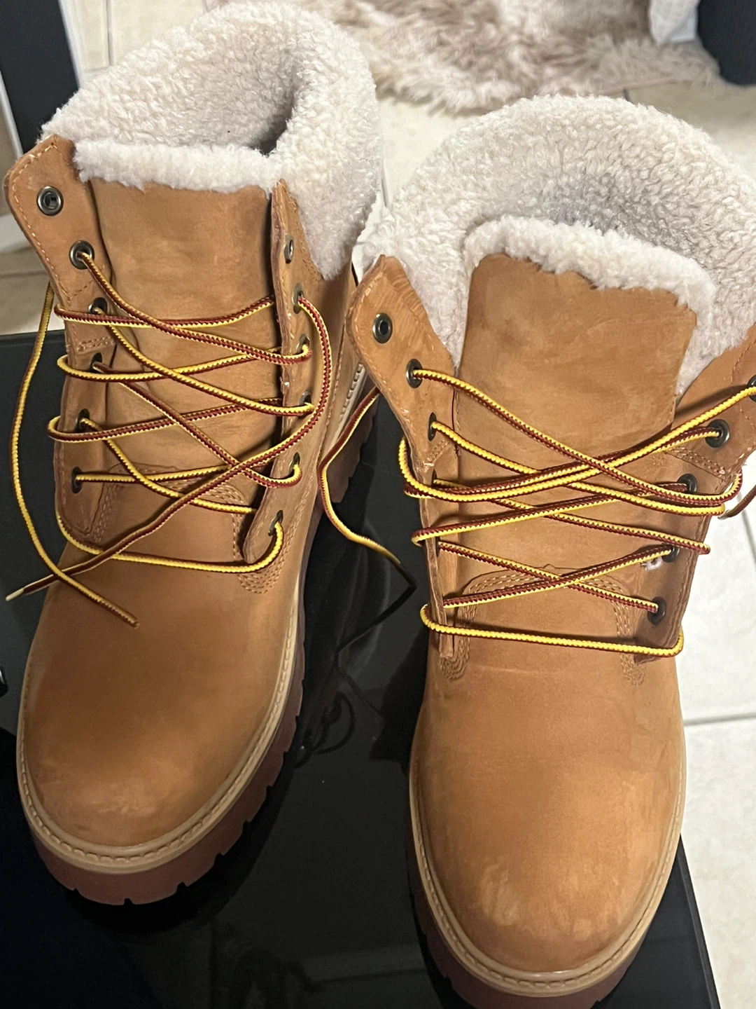Selling a pair of winter Timberland boots for women in size 9. They are in great condition and ready for a new owner! The boots are a stylish tan colour with a cozy, soft lining.