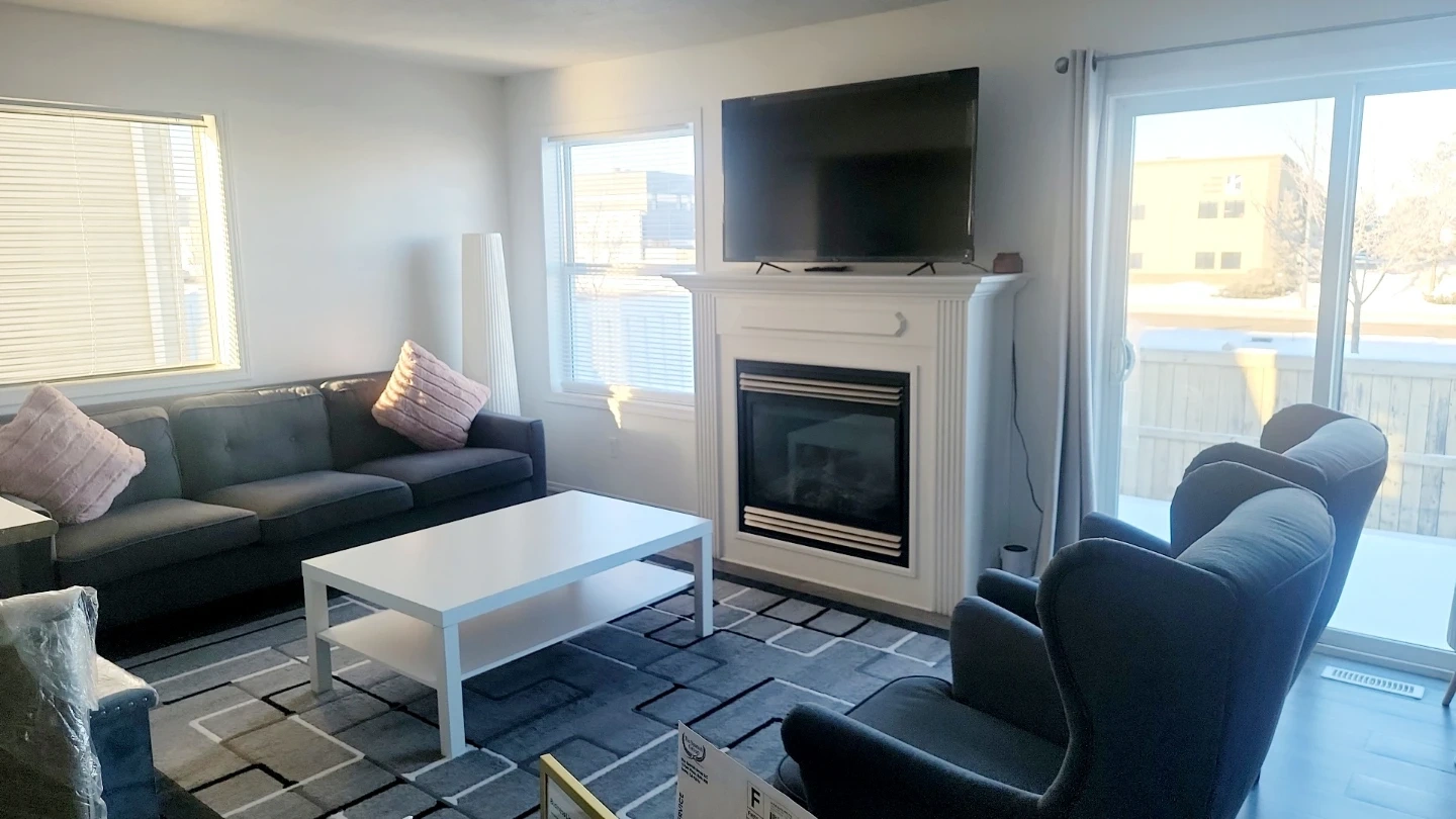 This bright home offers three bedrooms and one and a half bathrooms, highlighted by a beautiful fireplace that adds warmth and charm. The modern open-concept layout is filled with natural light and overlooks a peaceful green space, creating a sense of privacy rarely found in condo living. Enjoy the convenience of a single attached garage, providing secure, weather-protected parking. The unfinished basement presents a great opportunity to customize the space to suit your needs. Ideally located near major routes, including Anthony Henday, and close to shopping and amenities at South Edmonton Common and Ellerise Road.